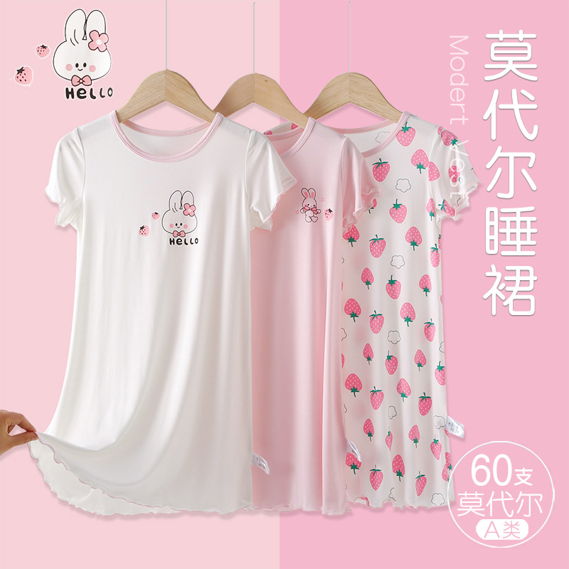 | nameOriginal | Girls' Nightgown 60 Modal Women's Treasure Cute Children's Spring and Summer Short-sleeved Home Clothes Children's Pajamas Princess Style |