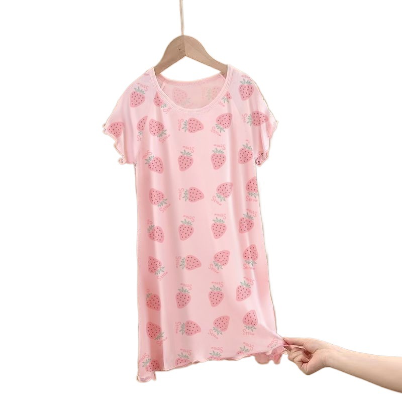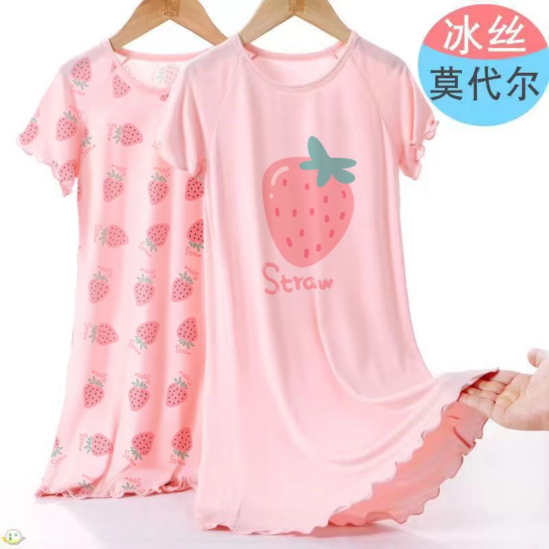 | nameOriginal | Girls' Nightgown Ice Silk Modal Princess Style Summer Thin Pajamas for Large Children 12 Short Sleeve Children 10 Home Clothes |