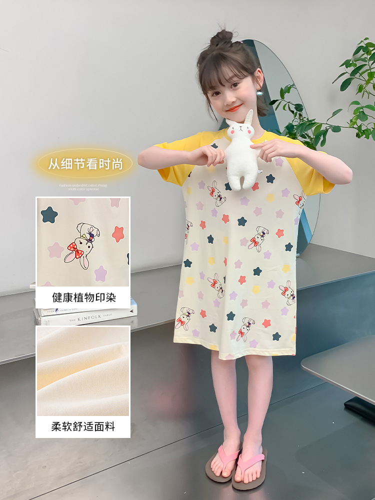 | nameOriginal | Girl's Nightgown Summer Class A Cotton Korean Style Children's Wear 2024 New Star Pattern Children's Nightgown Big Children's Home Clothes |