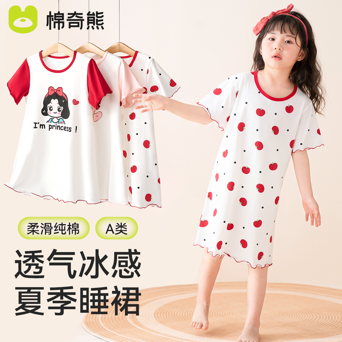 Girls nightgown summer thin children’s cotton short sleeve home clothes little girl princess pajamas 2024 new skirt wholesale