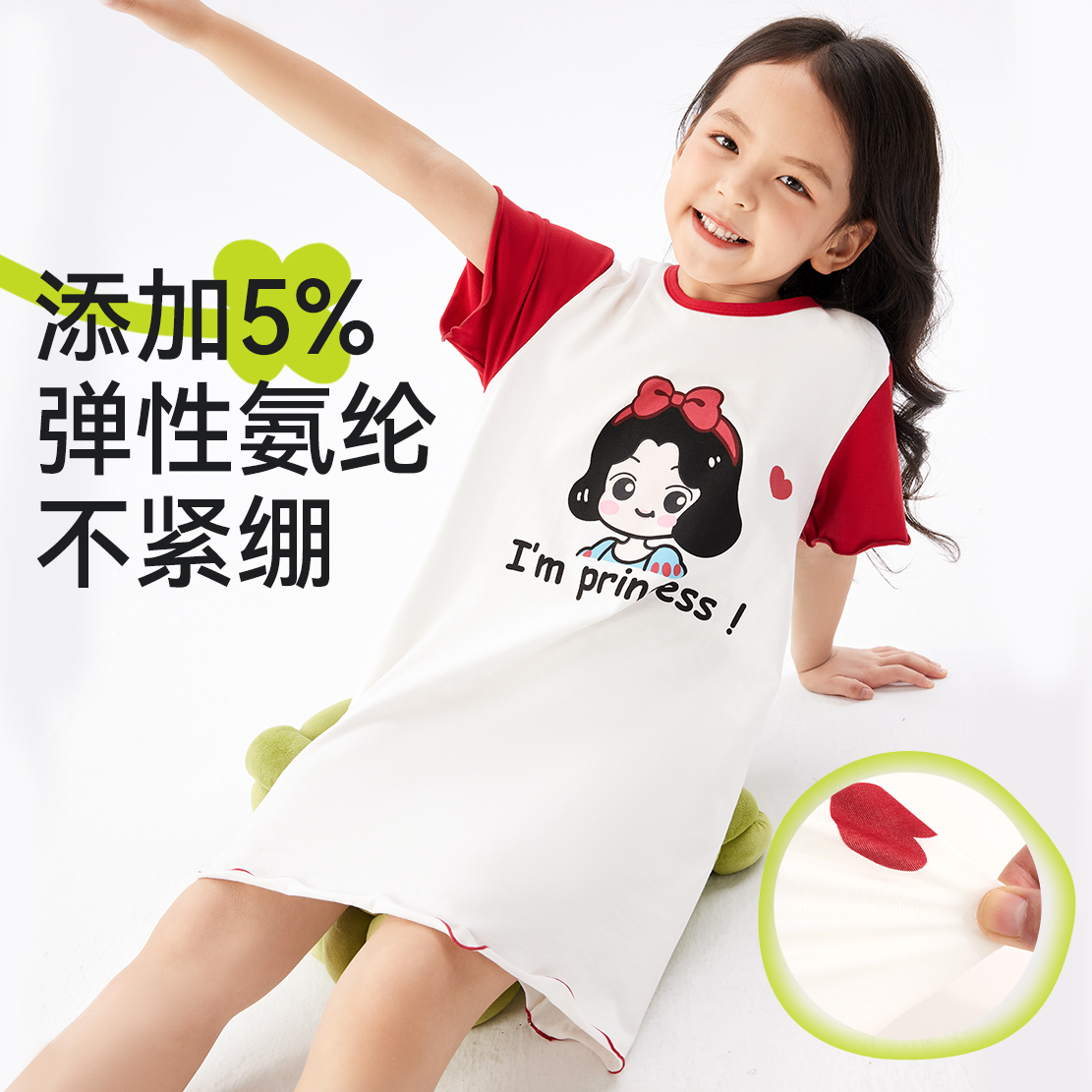 Girls nightgown summer thin children's cotton short sleeve home clothes little girl princess pajamas 2024 new skirt wholesale