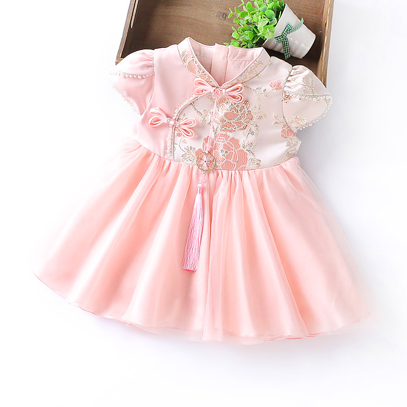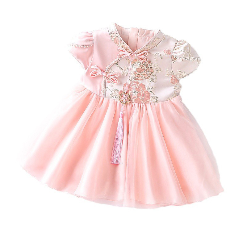 Girls' one-year-old dress baby girls' summer pink cheongsam vest dress girls' high-end princess dress 9835