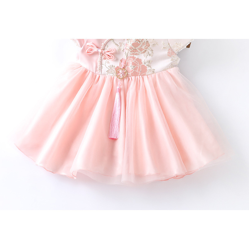 Girls’ one-year-old dress baby girls’ summer pink cheongsam vest dress girls’ high-end princess dress 9835