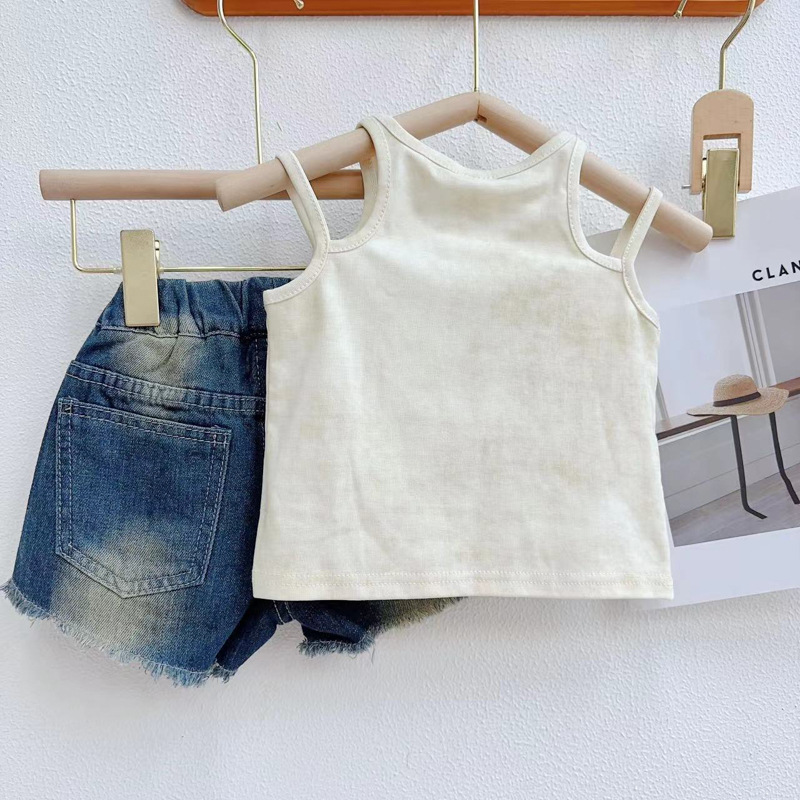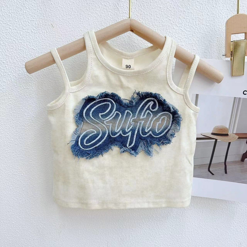 | nameOriginal | Girls Padded Denim Knitted Cotton Vest Summer New Girl's Fashionable Sleeveless Short Top CM0156 |