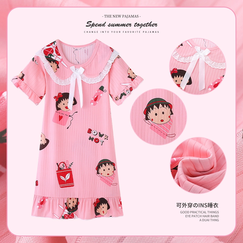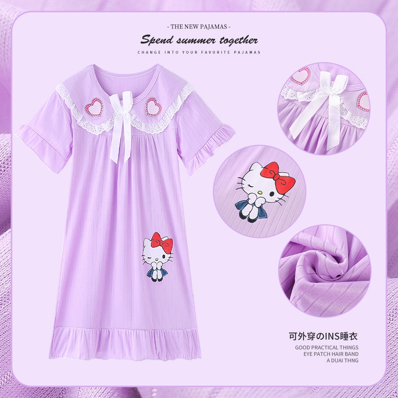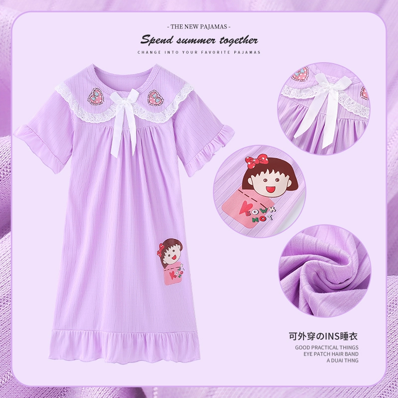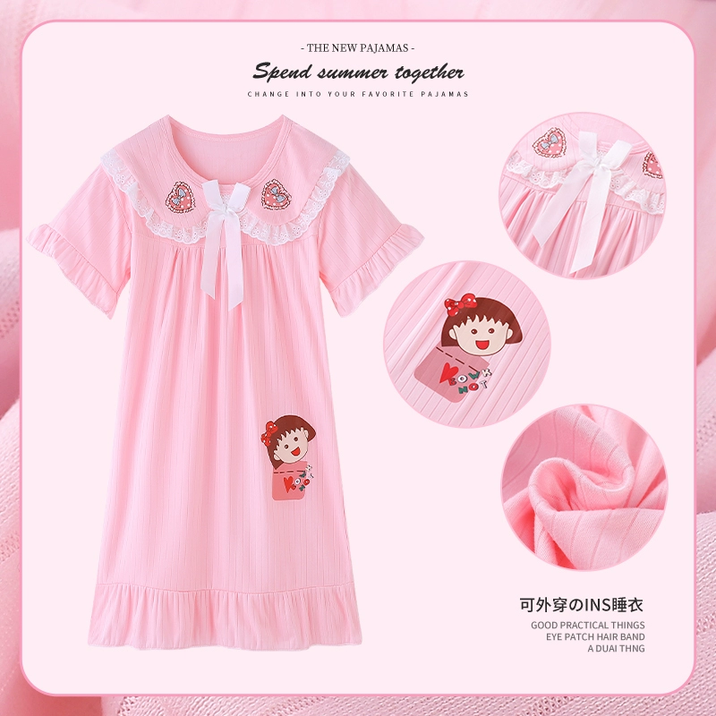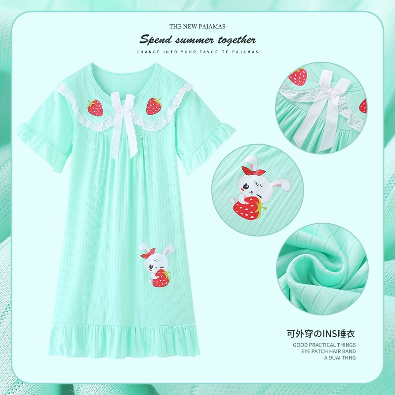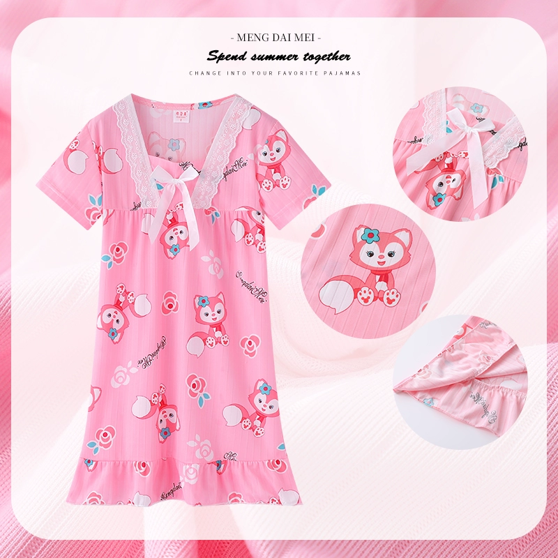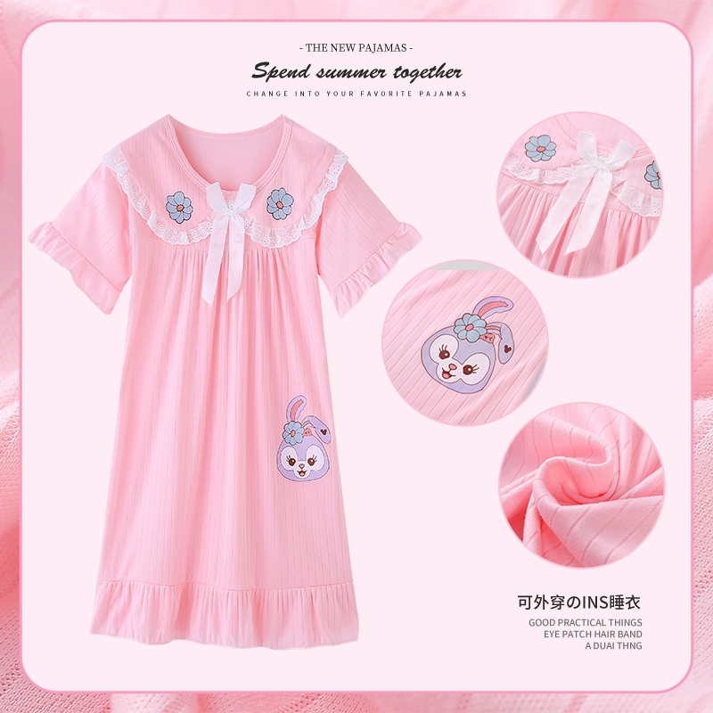 | nameOriginal | Girls' Pajamas Short Sleeve Summer Thin Princess Style Star Dailu Cartoon Cute Home Clothes Loose Middle and Large Children's Nightgown |
