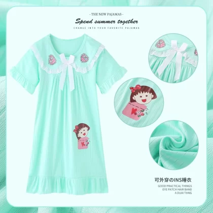 | nameOriginal | Girls' Pajamas Short Sleeve Summer Thin Princess Style Star Dailu Cartoon Cute Home Clothes Loose Middle and Large Children's Nightgown |