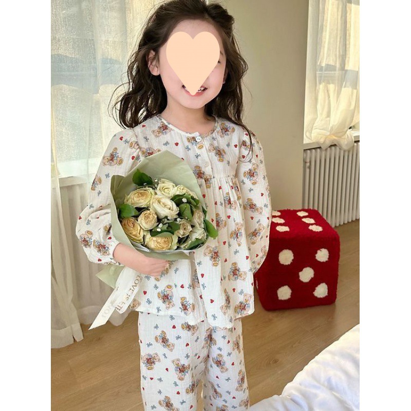 | nameOriginal | Girls' Pajamas Spring and Autumn Long Sleeve Western Style Middle and Big Kids Girls Baby Cute Princess Style Children's Home Clothes suit |