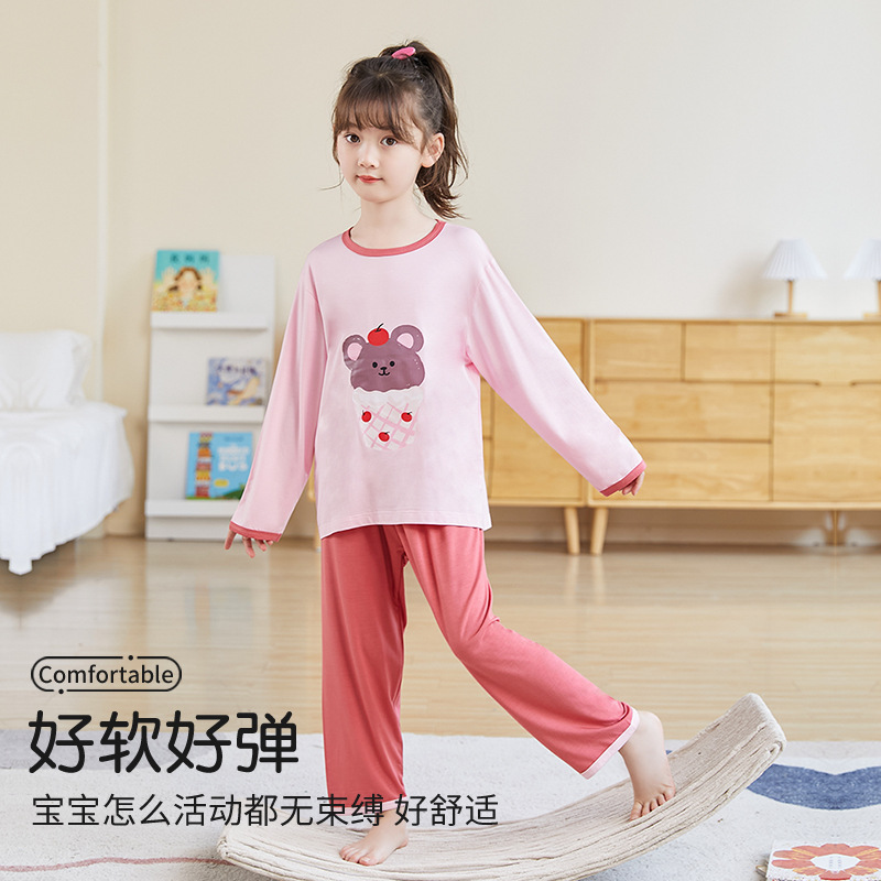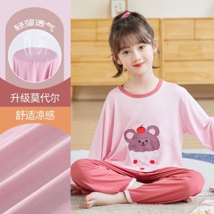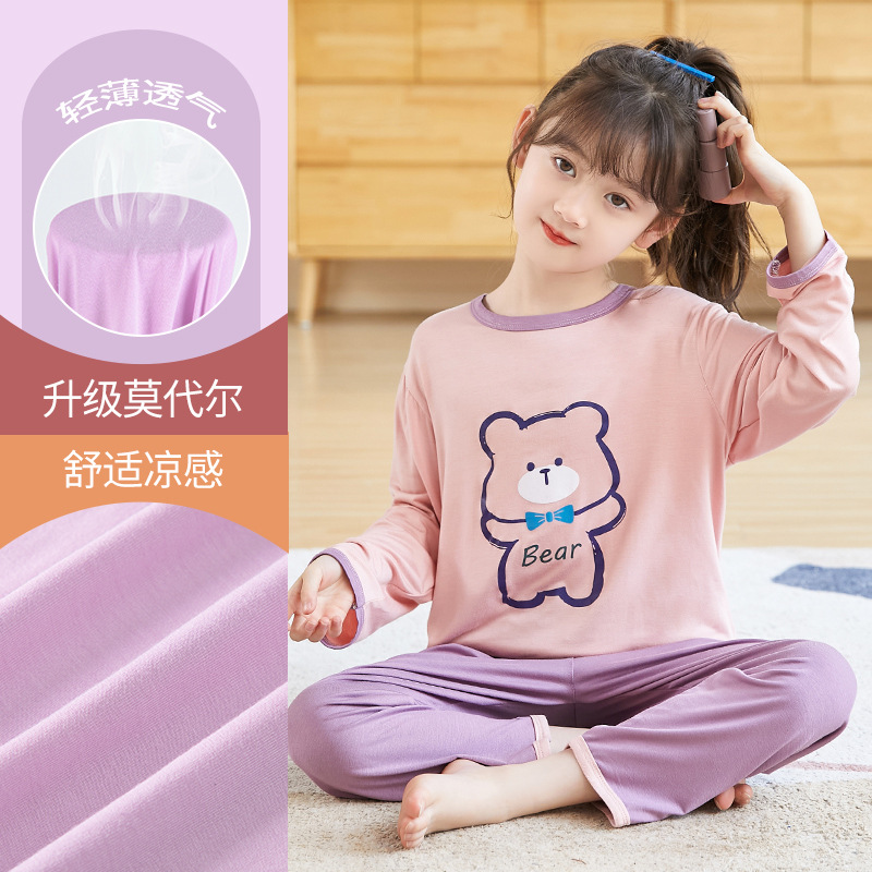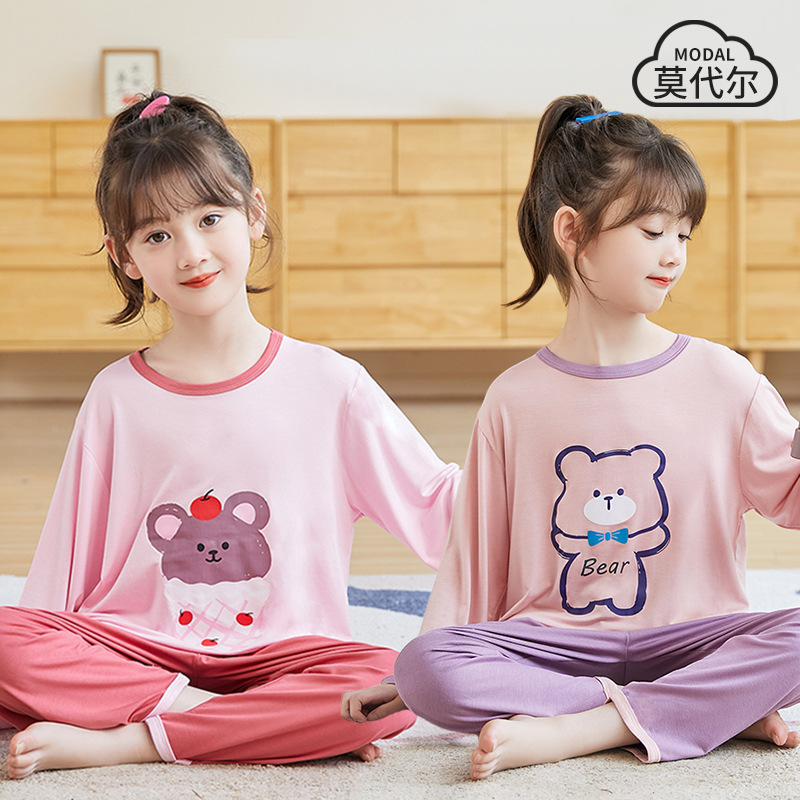 nameOriginal | Girls' pajamas spring and autumn modal pajamas children's suit cute bear Girls' Home clothes one-piece delivery |