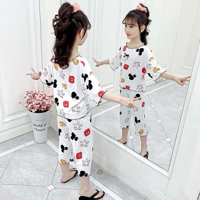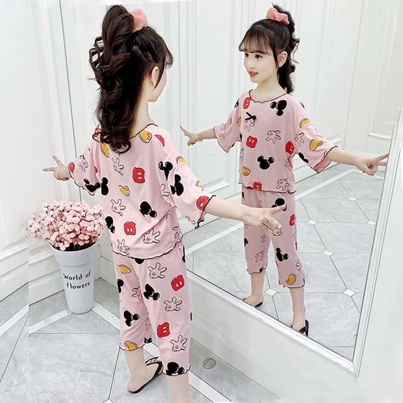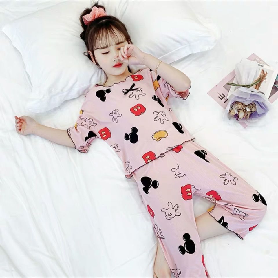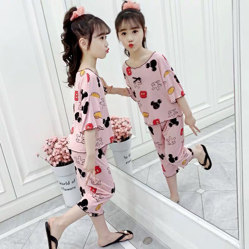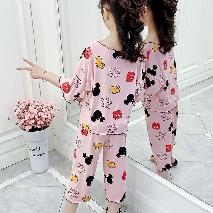 Girls’ Pajamas suit 2021 Spring and Summer Thin Children’s Home Clothes Air Conditioning Cute Super Cute
