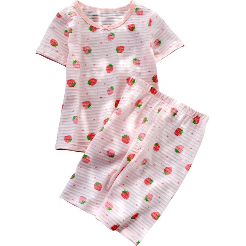 | nameOriginal | Girls' Pajamas suit Summer Thin Home Clothes Children's Slub Cotton Short-sleeved Two-piece Set A Type Cotton Medium and Large Children |