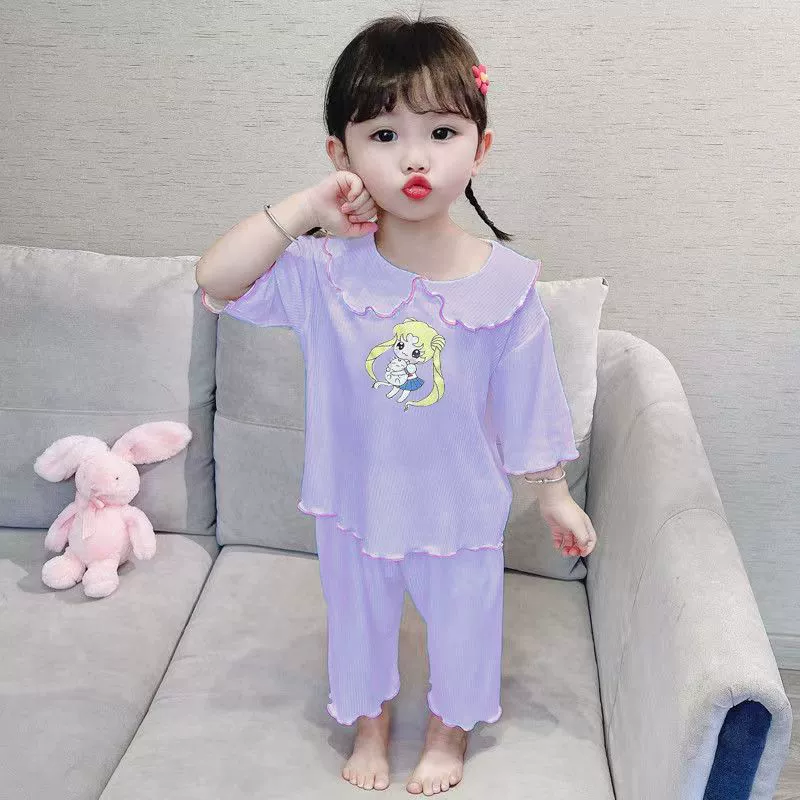 | nameOriginal | Girls pajamas summer suit ice silk baby girl princess style three-quarter sleeves children's air-conditioned clothes thin home clothes |