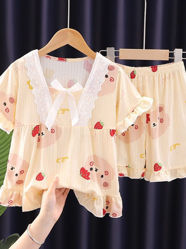| nameOriginal | Girl's Pajamas Summer Thin Children's Pajamas Girl's Princess Home Clothes Thin Little Girl's Cute Short Sleeve Baby |