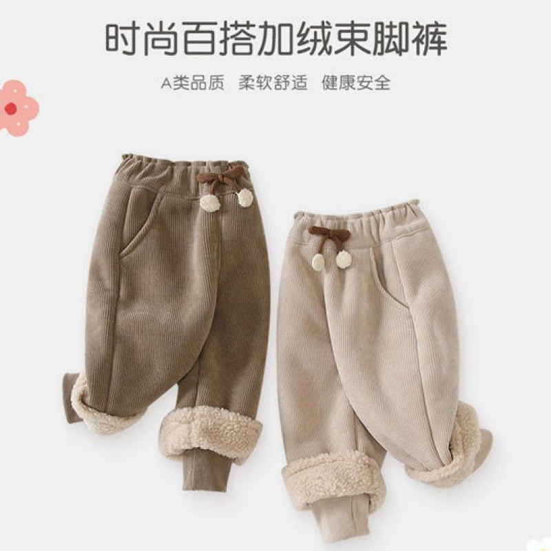 | nameOriginal | Girls' Pants Autumn and Winter 2023 New Super Soft Pants Baby Girl One Ollie Velvet Pants fleece-lined Thickened Warm |