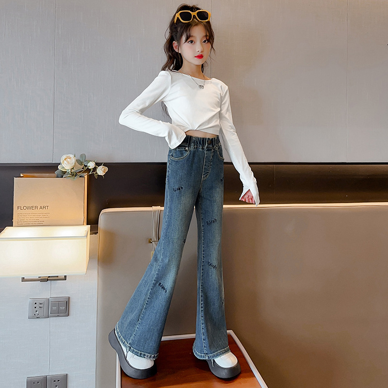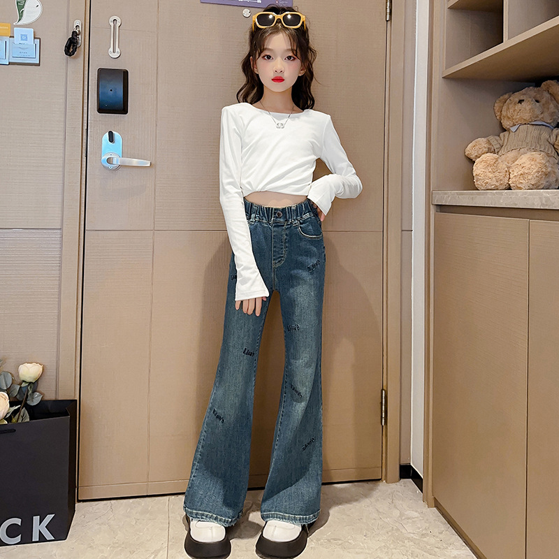 | nameOriginal | Girls' Pants Spring and Autumn Outer Wear 2024 New Middle and Large Children's Casual Stretch Pants Spring Children's Denim Flared Pants |