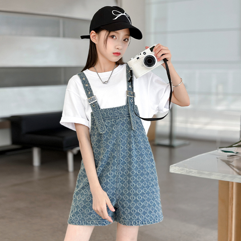 | nameOriginal | Girls' Pants Summer Thin 2024 New Fashion Western Style Korean Style Loose Denim Strap Shorts Trendy |