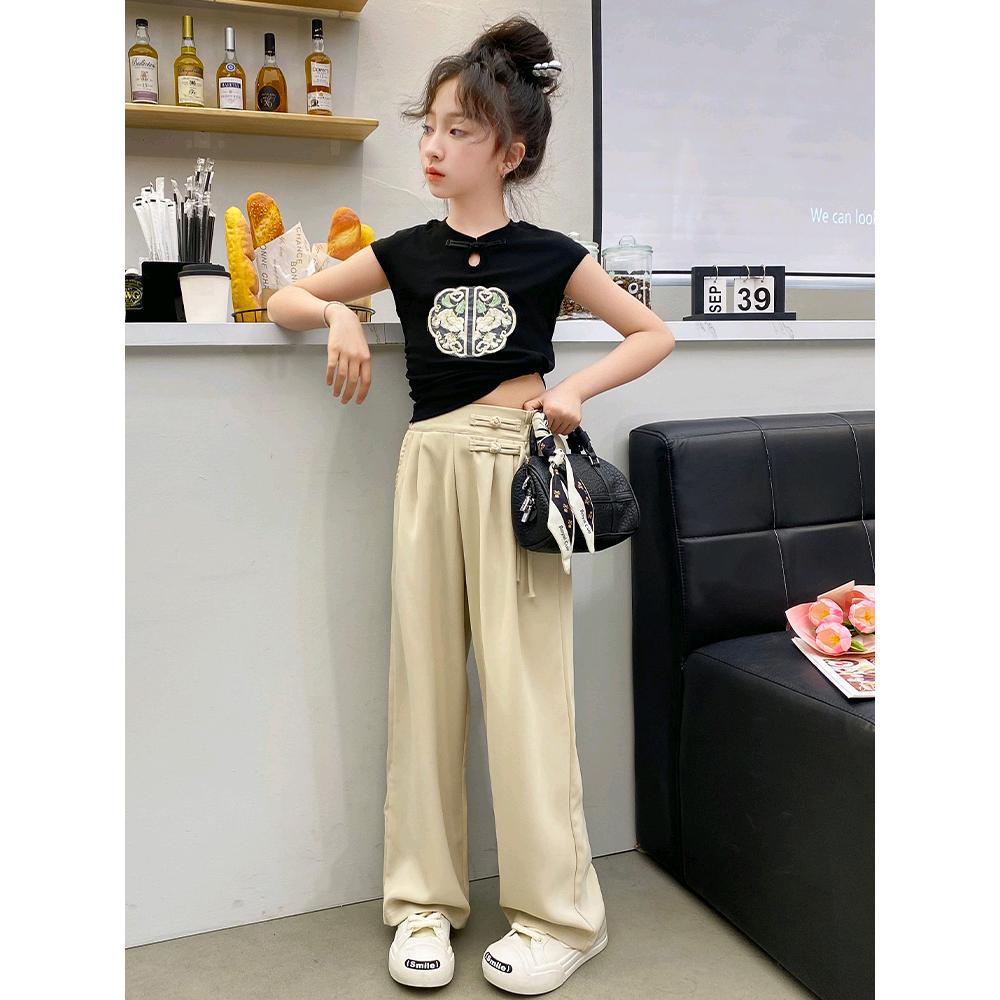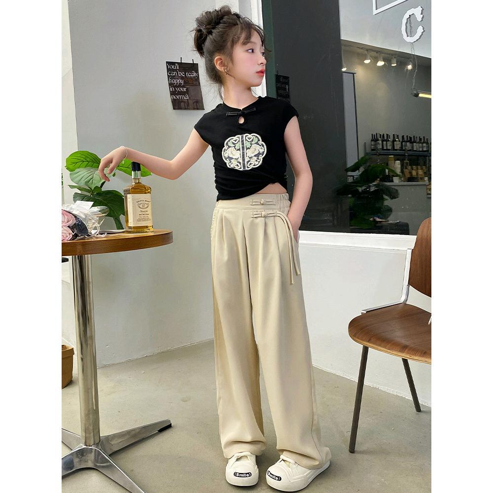| nameOriginal | Girls' Pants Summer Thin 2024 New National Style Wide Leg Pants Girls' New Chinese Style Vest Pants Two-piece Set |