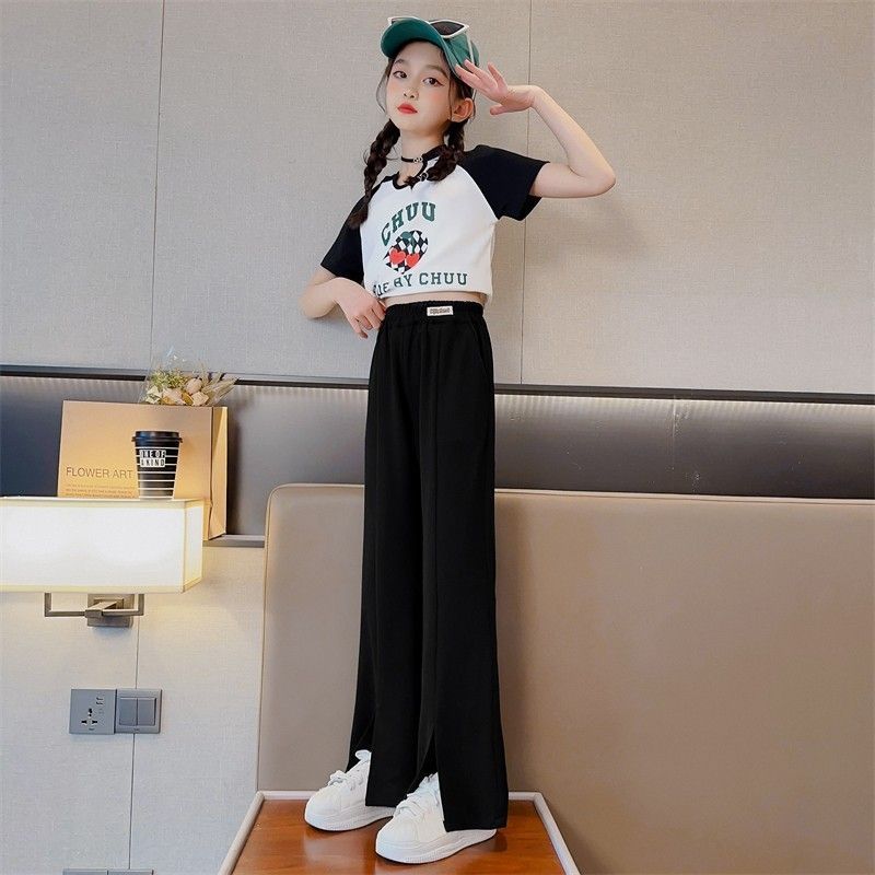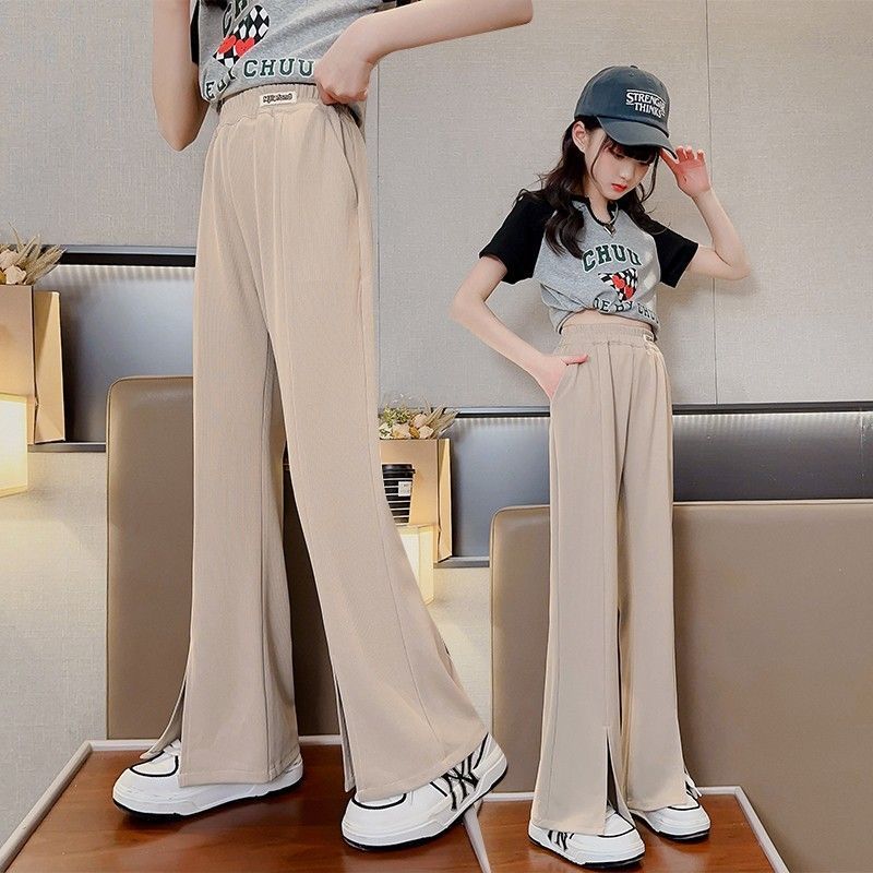 | nameOriginal | Girl's pants thin 2024 autumn Ice Silk medium and large children's casual loose wide-leg pants Western style split flared pants |