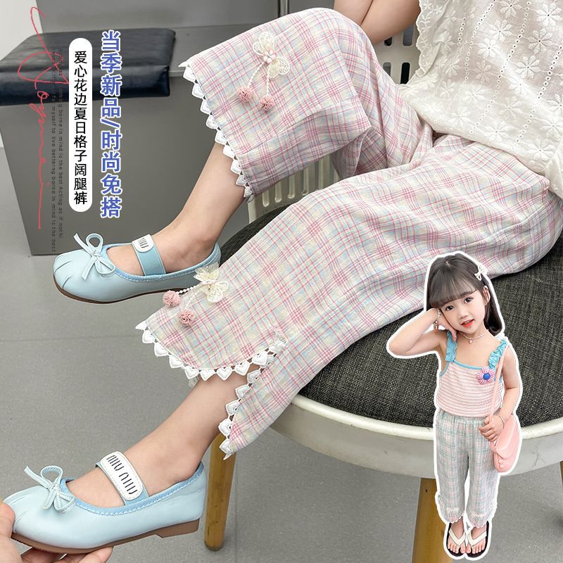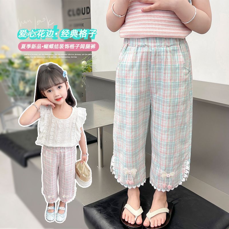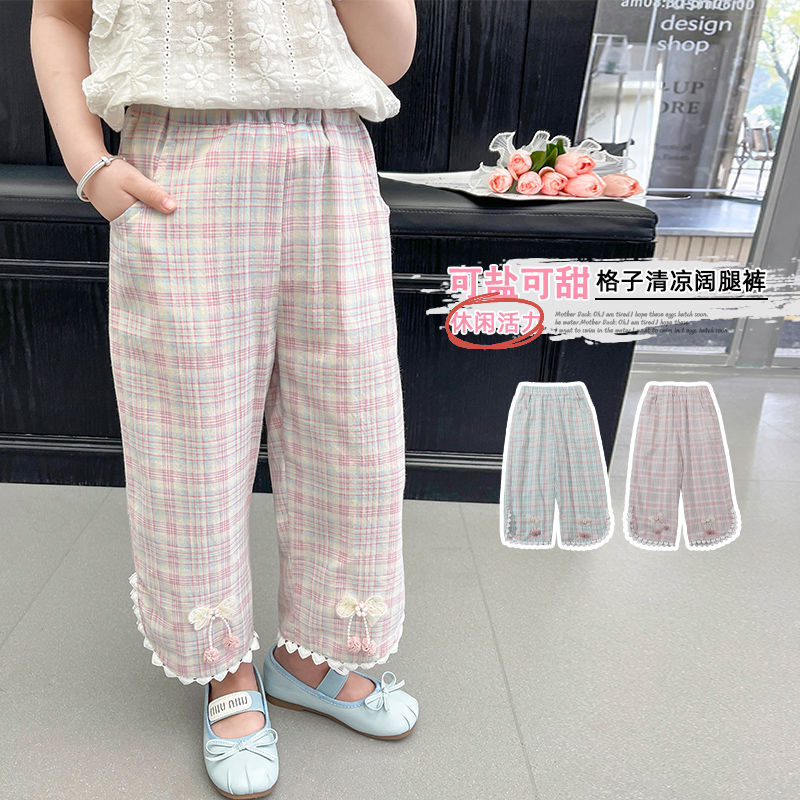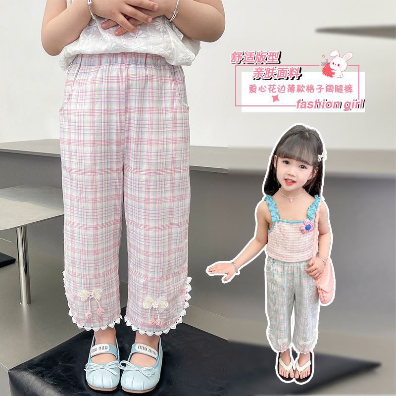| nameOriginal | Girls' Pants Thin Summer Straight Pants 2024 New Summer Baby Casual Pants Children's Plaid Outer Pants |