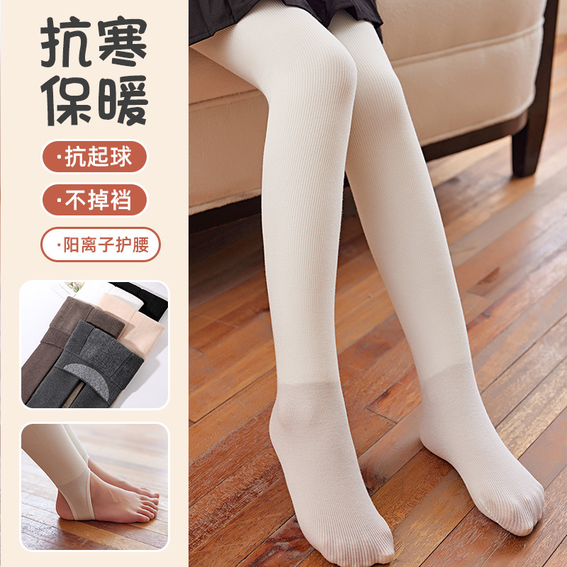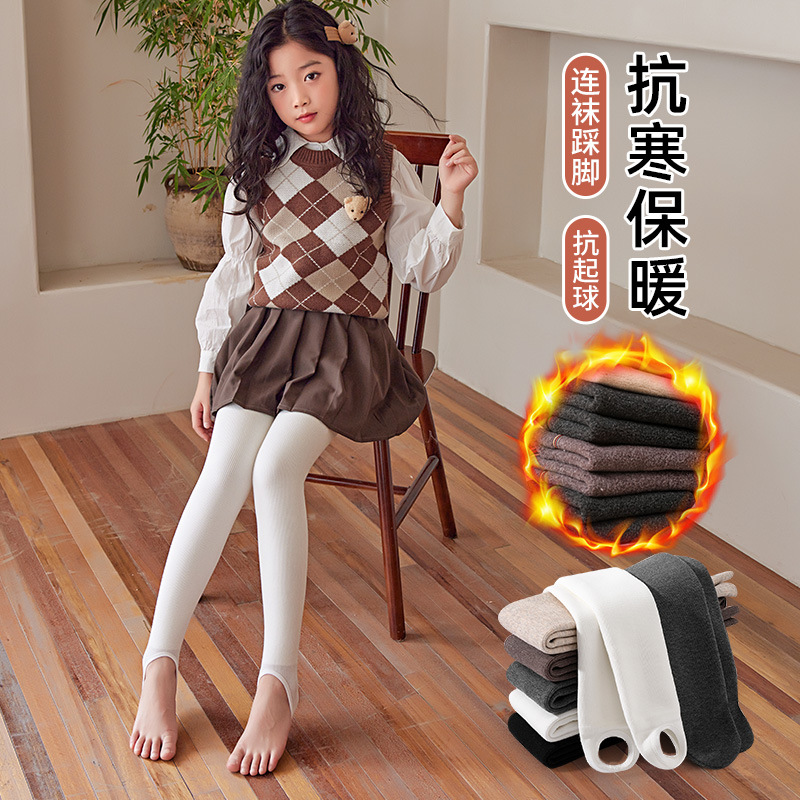 | nameOriginal | Girls' pantyhose fleece-lined children's vertical striped cashmere pantyhose v waist leggings children's warm step-on dance socks |
