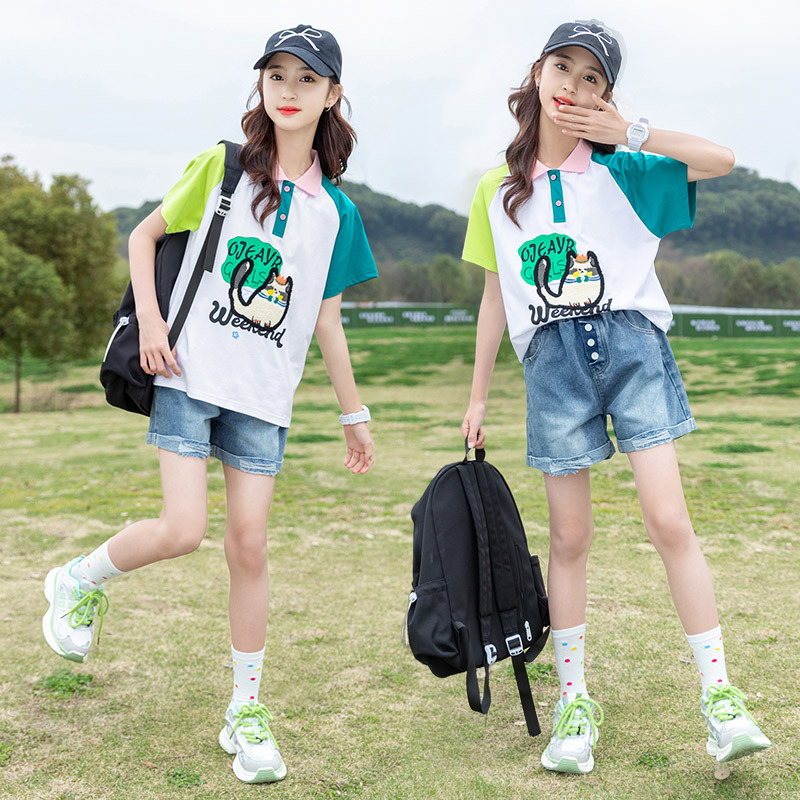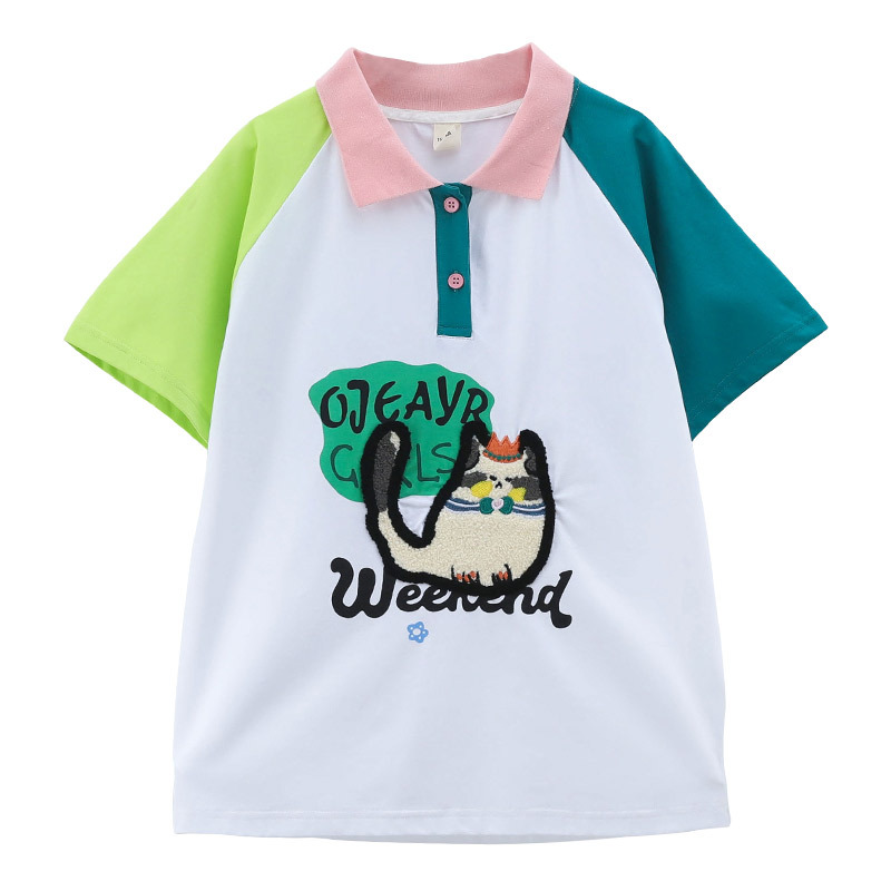 Girls Polo Shirt Short-sleeved T-shirt Summer 2024 New Loose Leck Children's Wear Western Style Girl Cartoon Children's Top