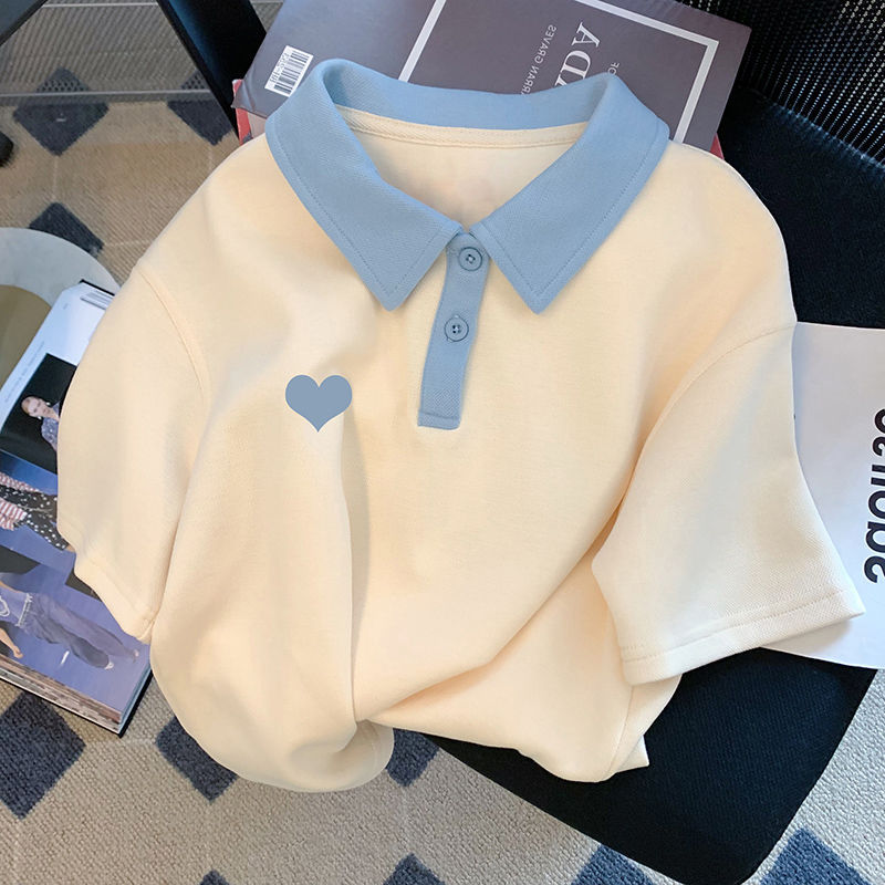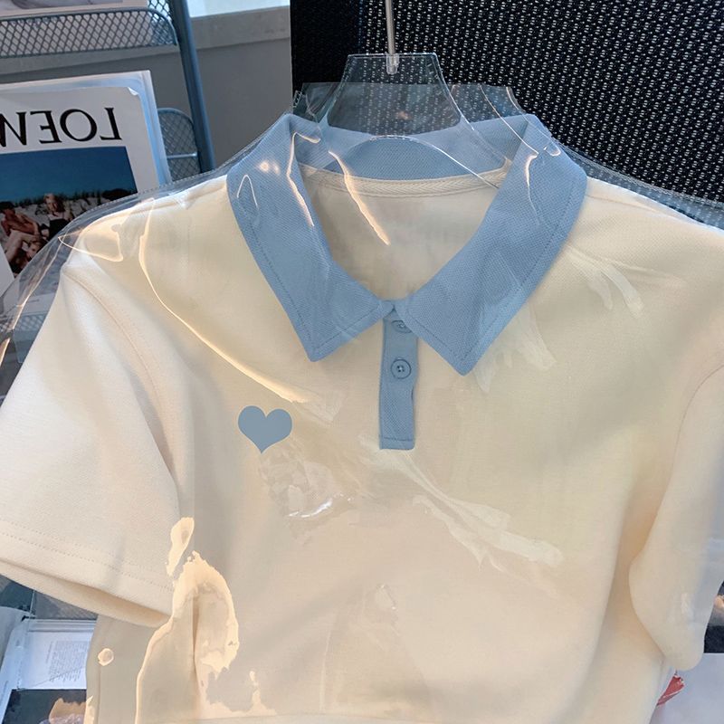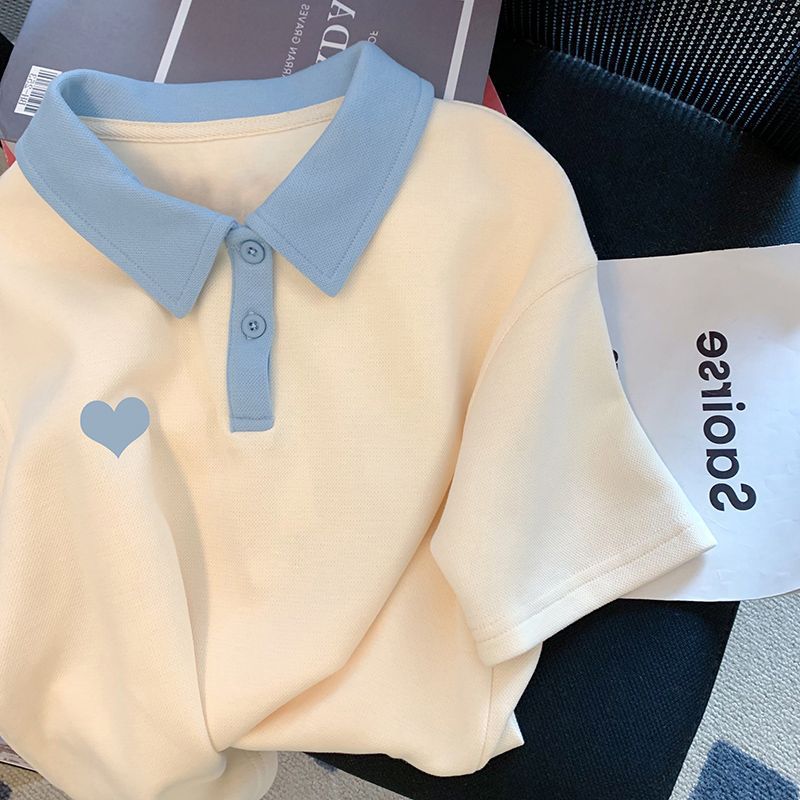 | nameOriginal | Girls' Polo Shirt Summer Short-sleeved College Style Lapel Korean Loose New Arrival Embroidered Trendy Short Top  |