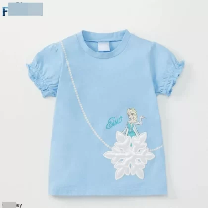 Girls Princess Elsa long hair short-sleeved shirt mermaid