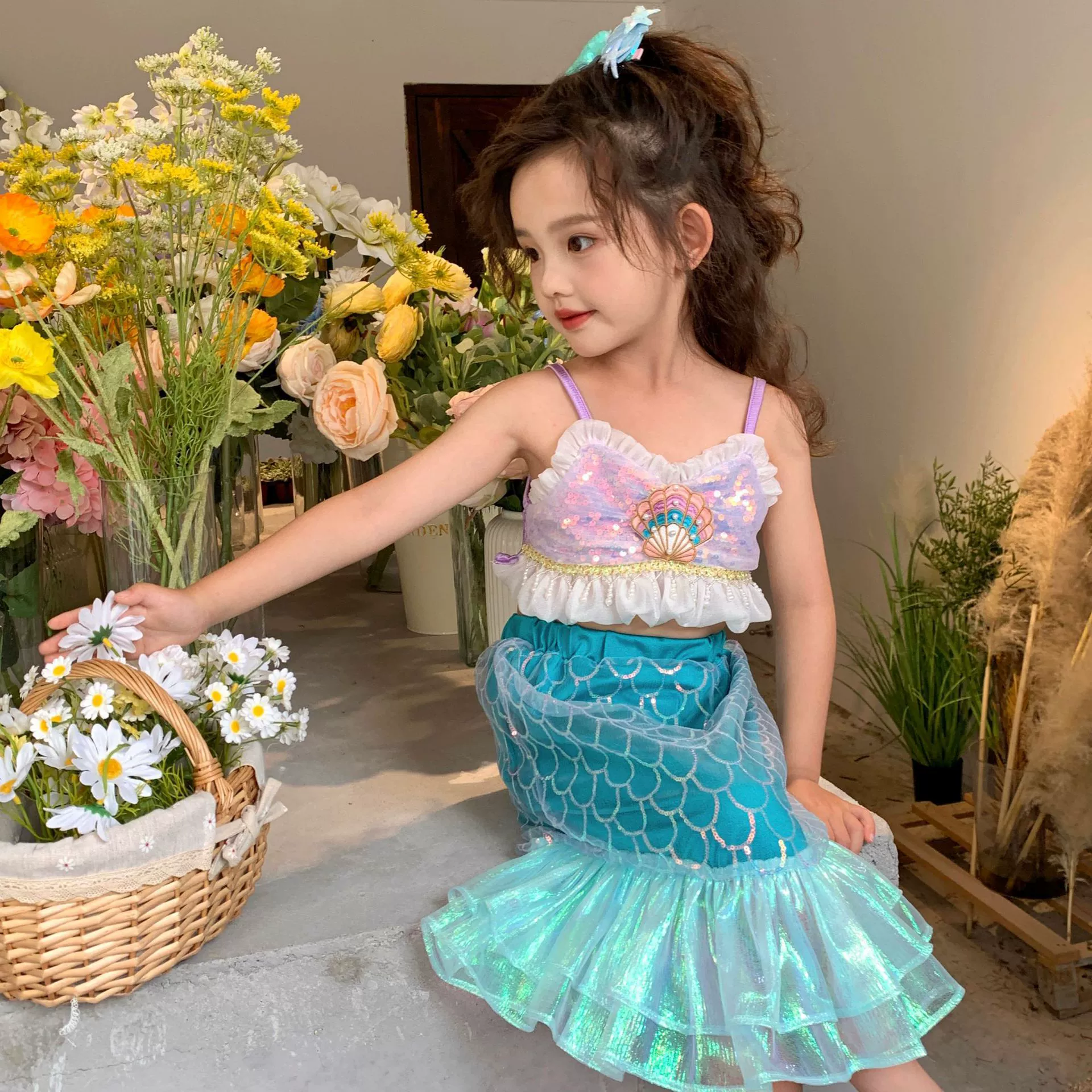 | nameOriginal | Girls princess sequin suspender sleeveless summer mermaid |