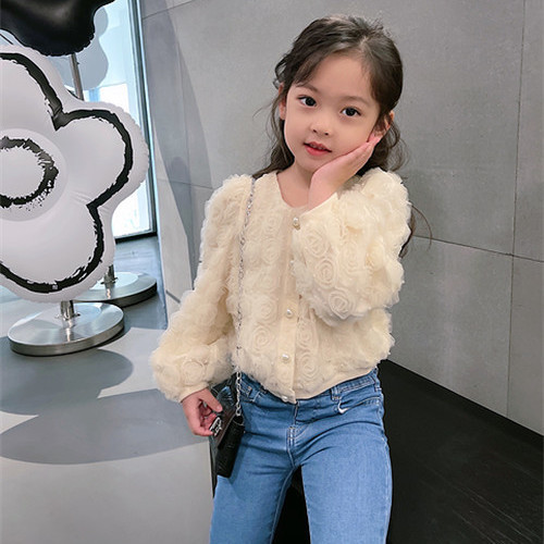| nameOriginal | Girls' Princess wear spring clothes Western style mesh three-dimensional flower cardigan coat 2023 new western style medium and large children's top |