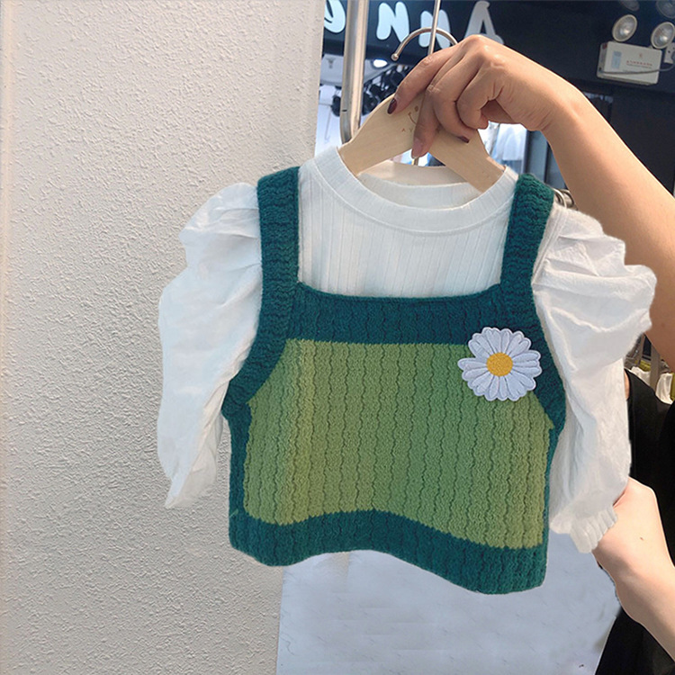 | nameOriginal | Girls' puff sleeve Autumn New style children's western style long sleeve white T-shirt Korean style outerwear knitwear |