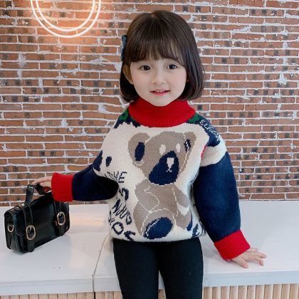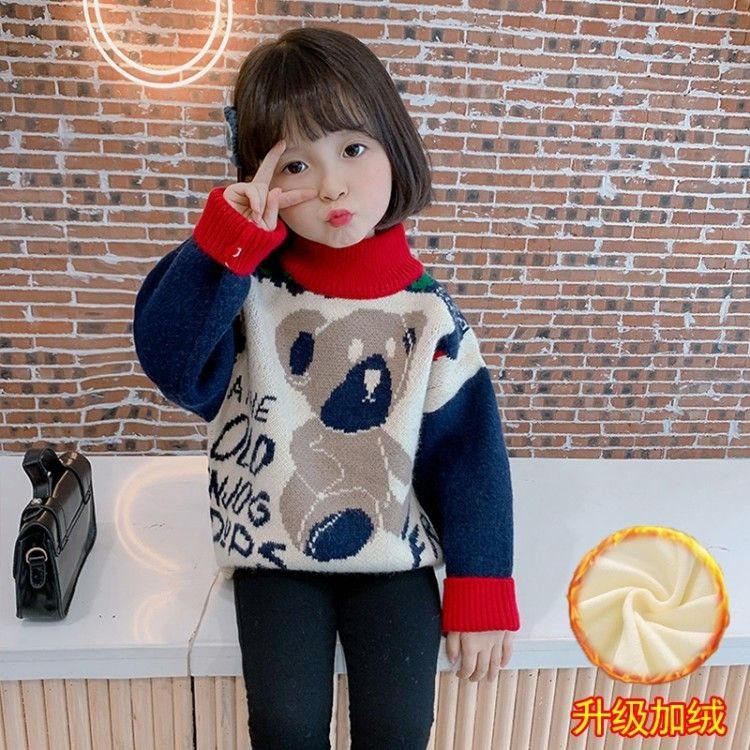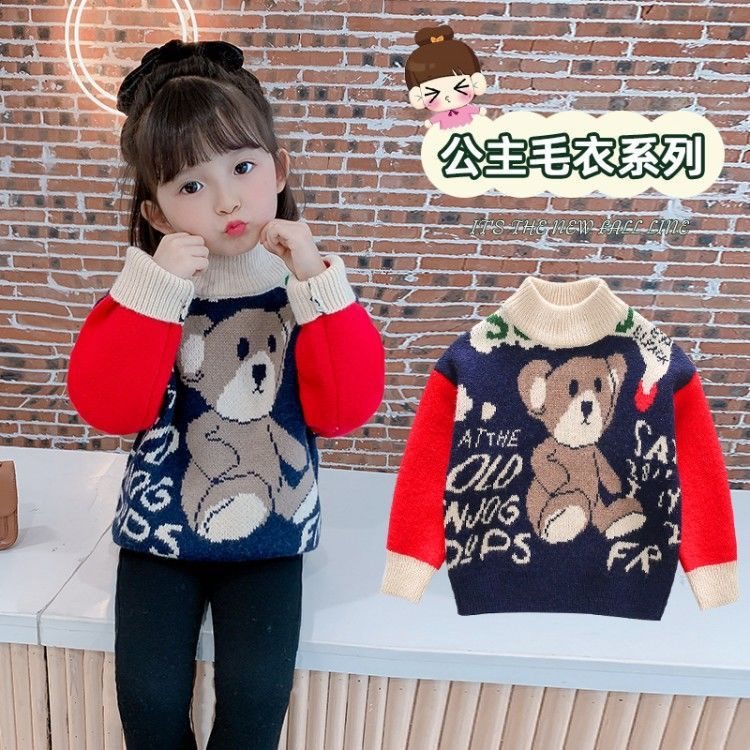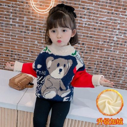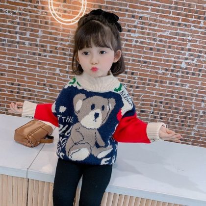 nameOriginal | Girls' Pullover Sweater 2022 Autumn Western Style Middle and Small Children Korean Round Neck Top Baby Knitted Base Shirt Trendy |