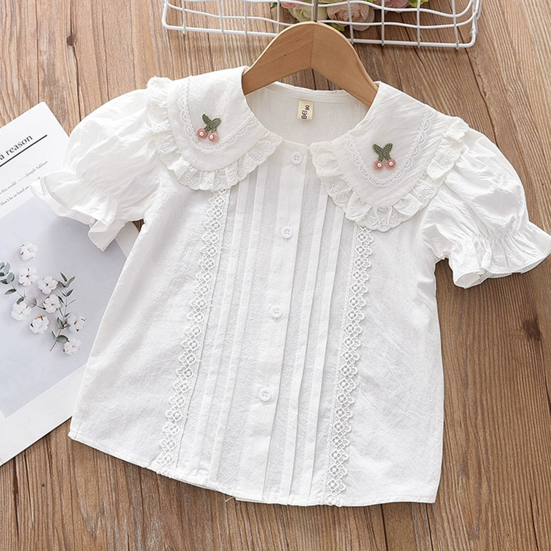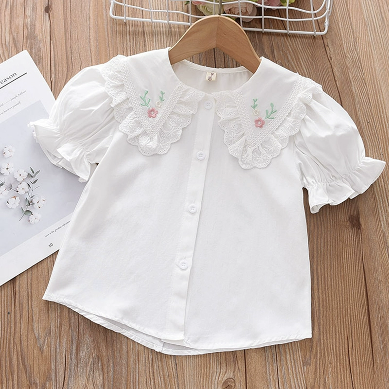 | nameOriginal | Girls pure cotton large lapel short-sleeved children's embroidered single-breasted babydoll shirt little girl fashionable princess shirt top summer |