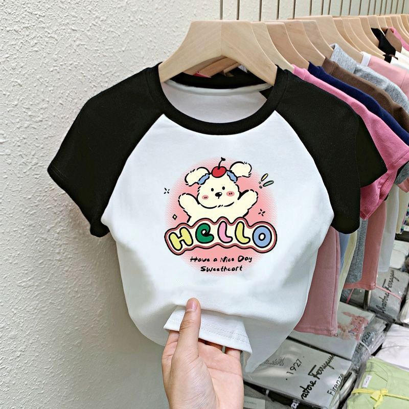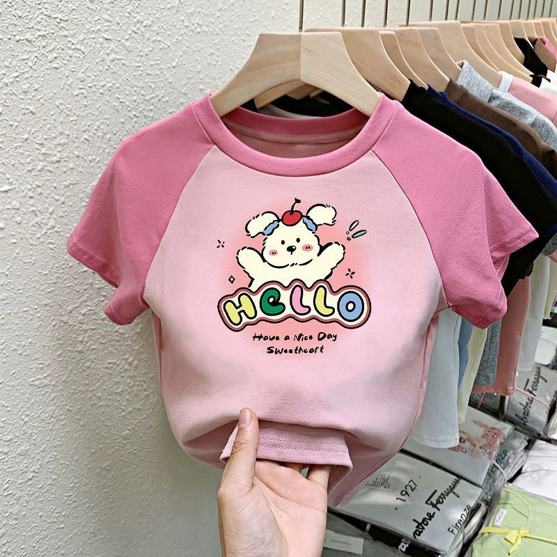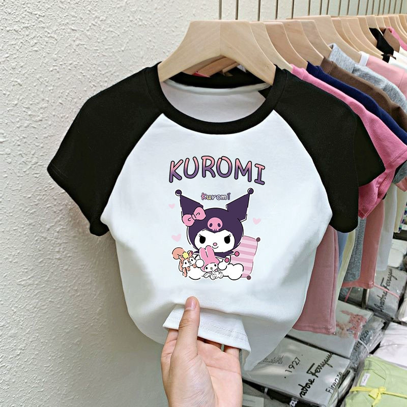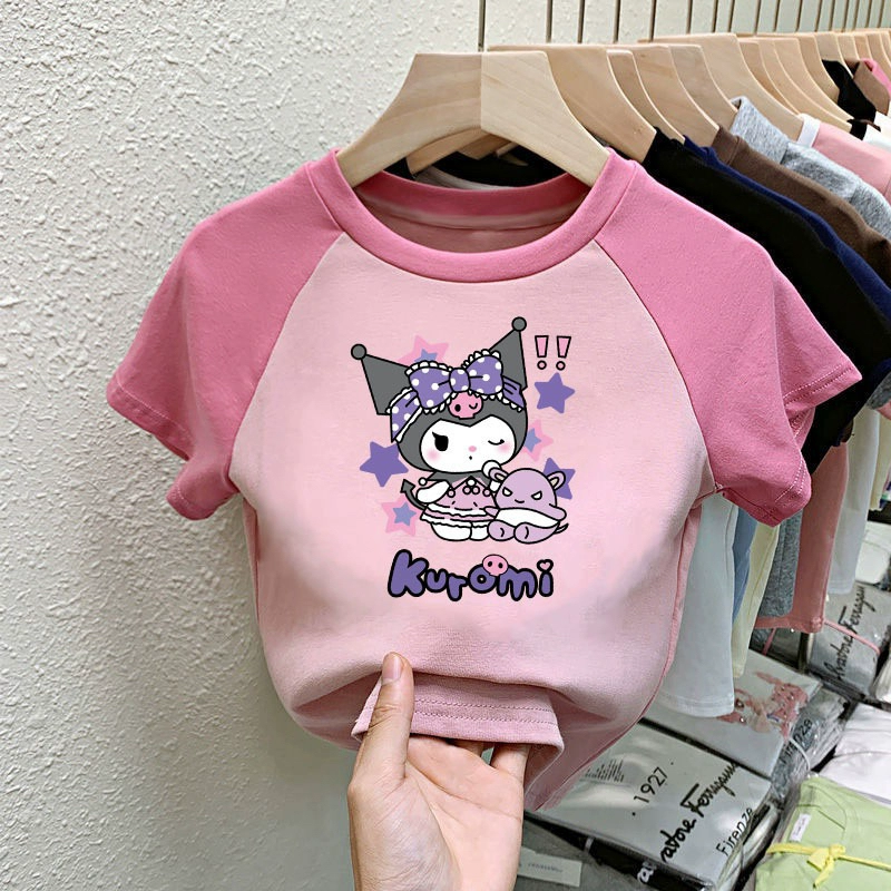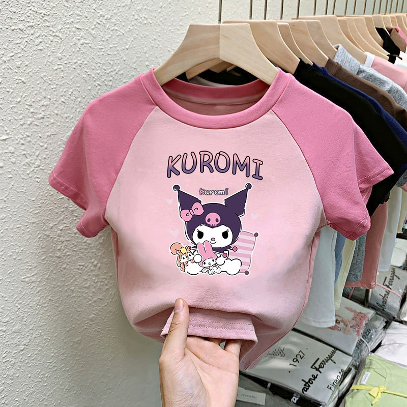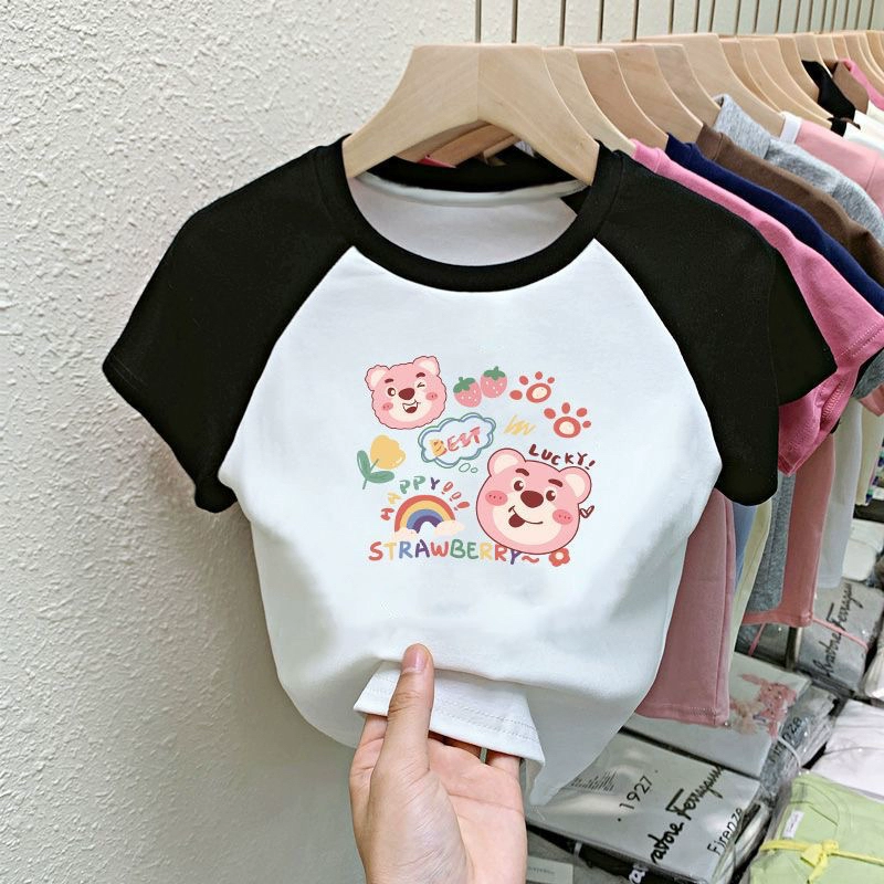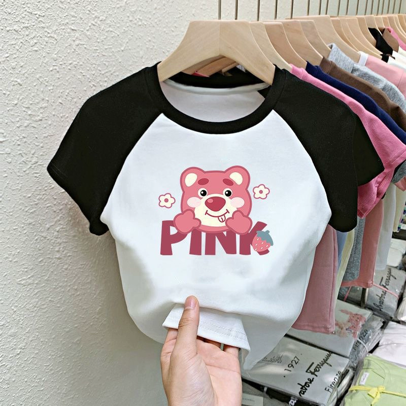 | nameOriginal | Girls pure cotton short-sleeved T-shirt 2024 new medium and large children cartoon children's T-shirt strawberry bear Kuromi trendy top |