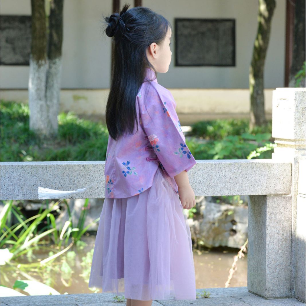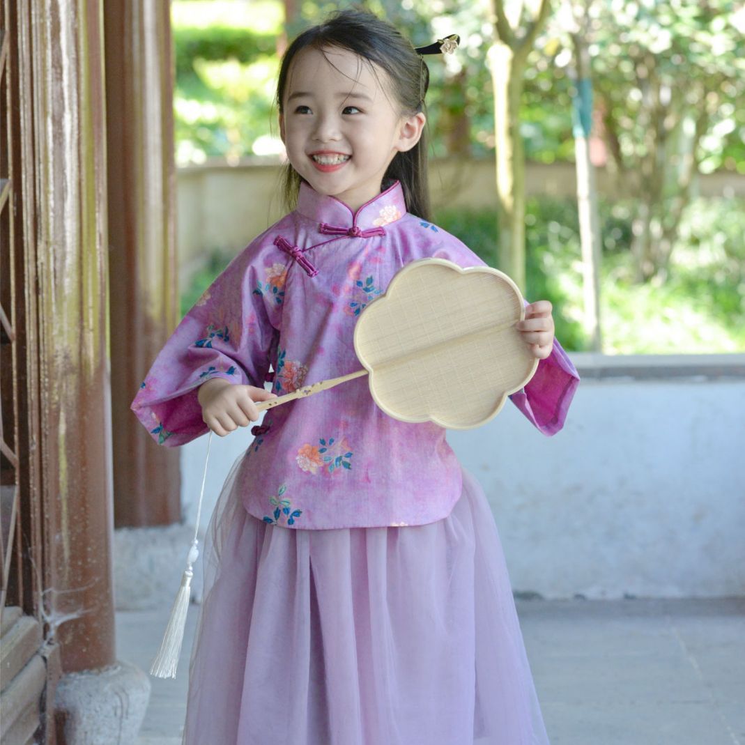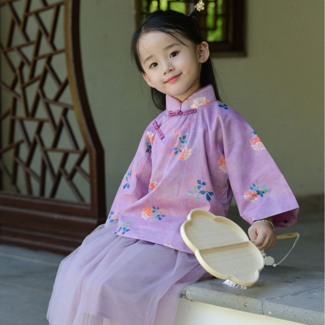 | nameOriginal | Girls' Purple Inverted large sleeve long-sleeved top 2023 Spring and Autumn new children's improved Hanfu baby suit |