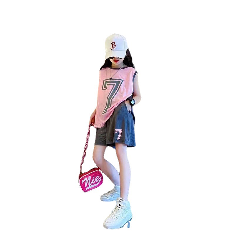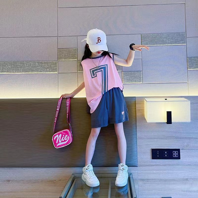 | nameOriginal | Girls' Quick-drying Sports Suit 2023 Summer New Children's Large Casual Ball Clothes Vest Shorts Two-piece Fashionable Set |