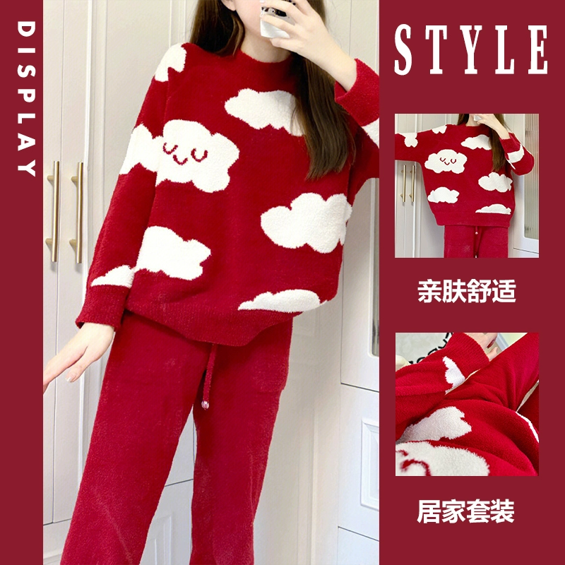 | nameOriginal | Girl's Red Zodiac Year Pajamas Women's Winter Plush Large Size Cloud Plush Knitted Warm Home Clothing Suit Winter |