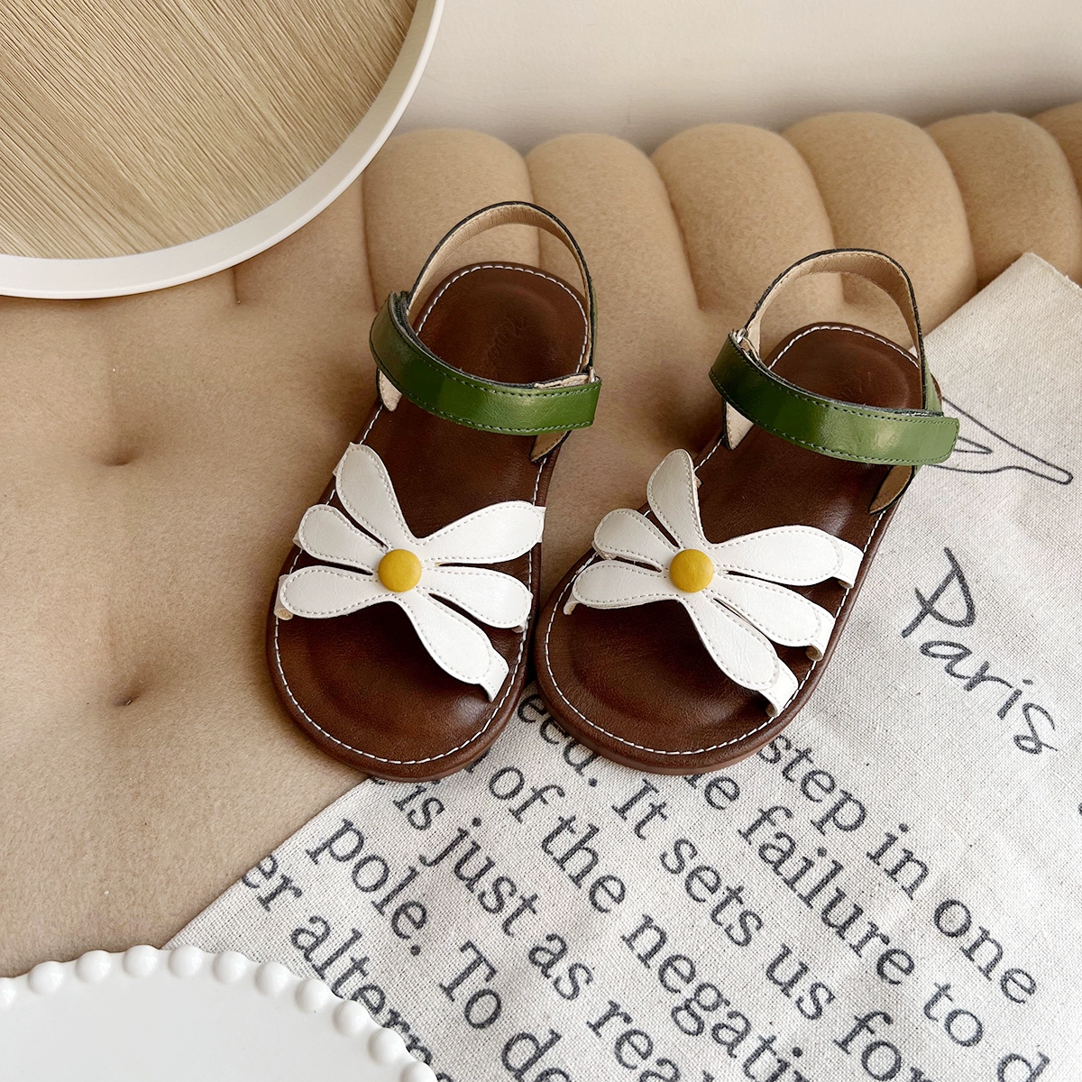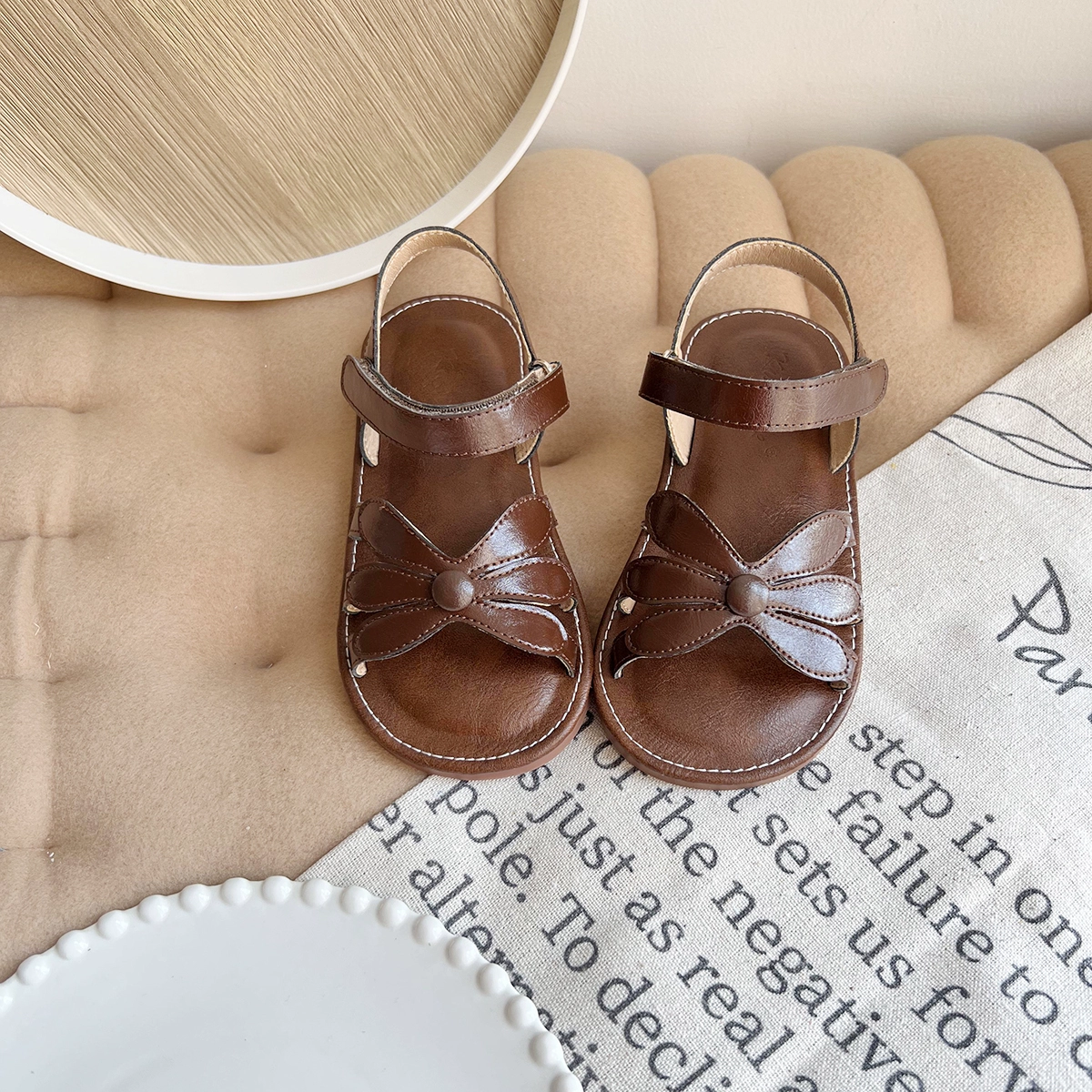 | nameOriginal | Girls retro sandals summer open toe flower leather shoes little girl sweet contrasting Velcro soft sole princess shoes trendy |