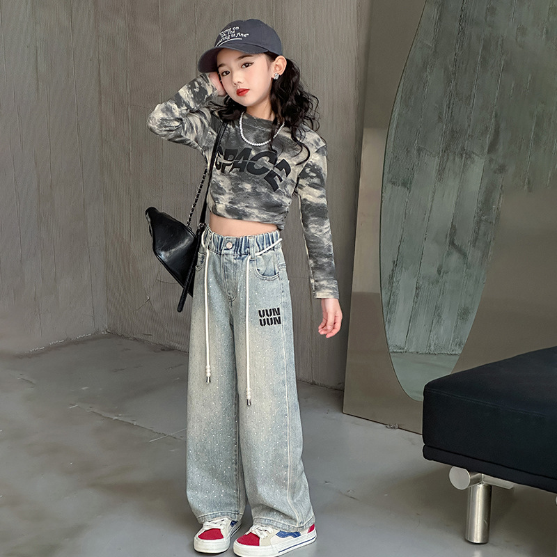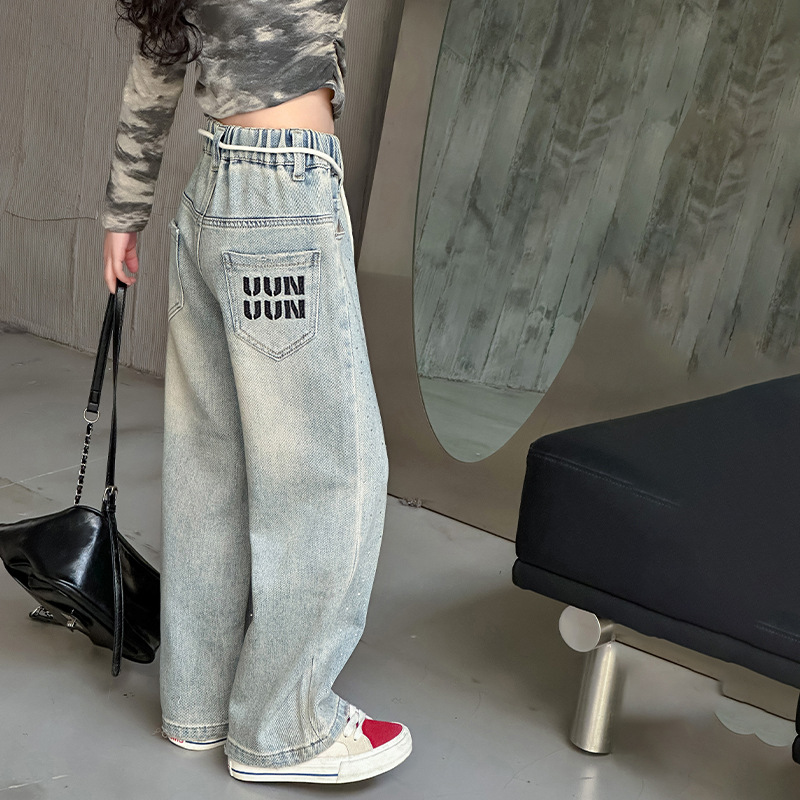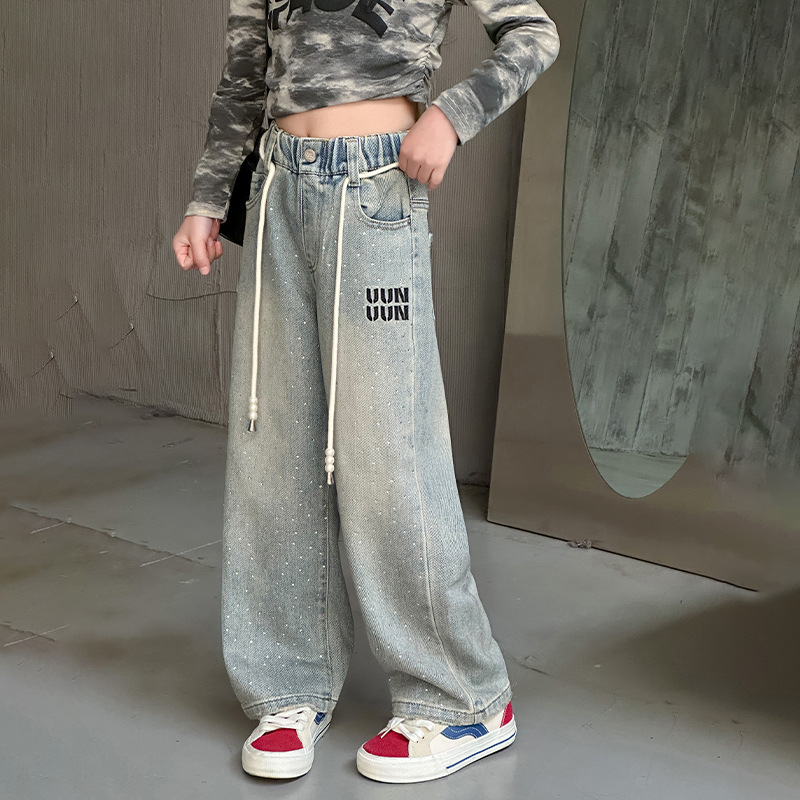 | nameOriginal | Girls' Rhinestone Embroidered Jeans 2024 Spring Foreign Trade Children's Wear Korean Style Loose Jeans |