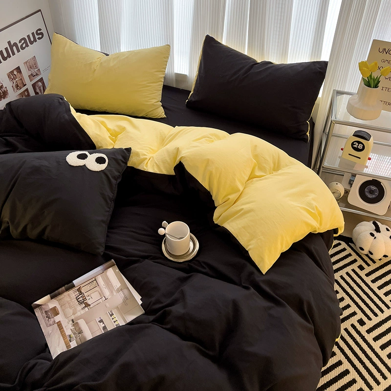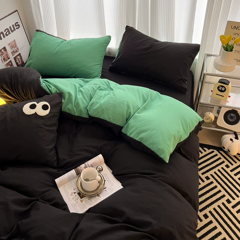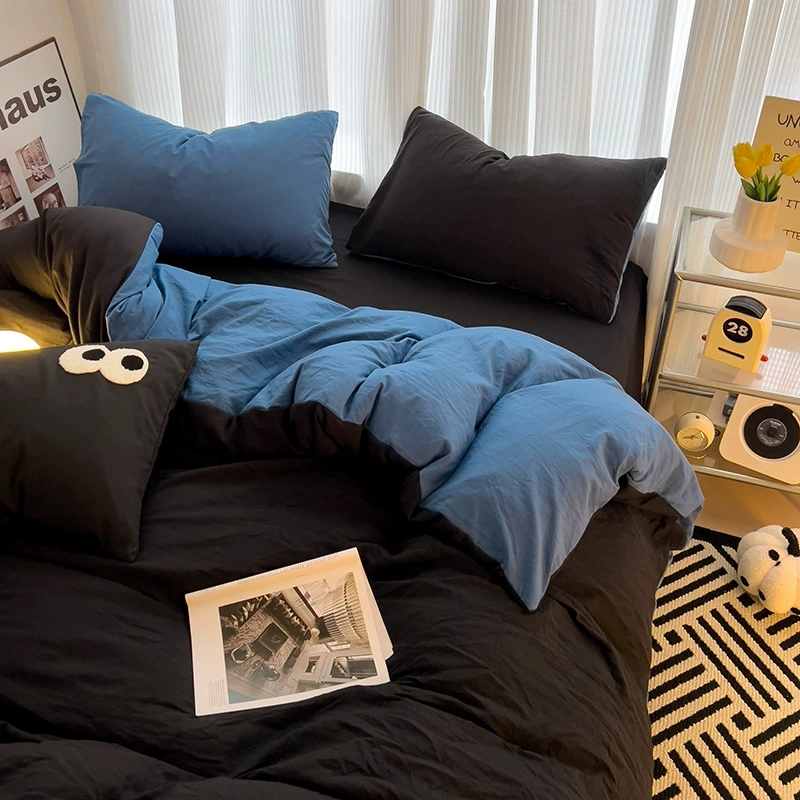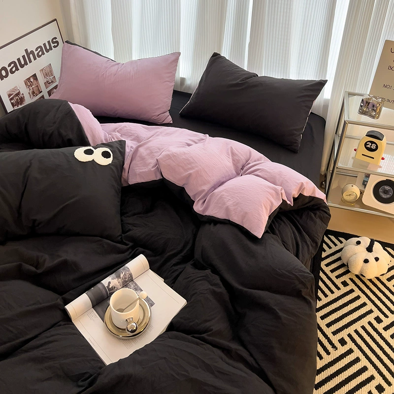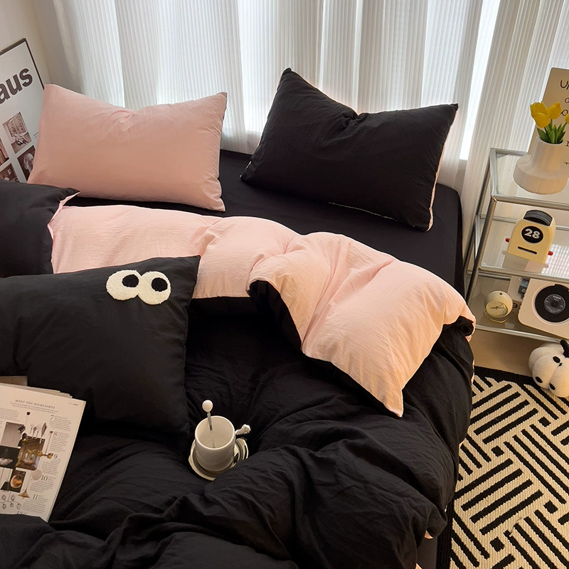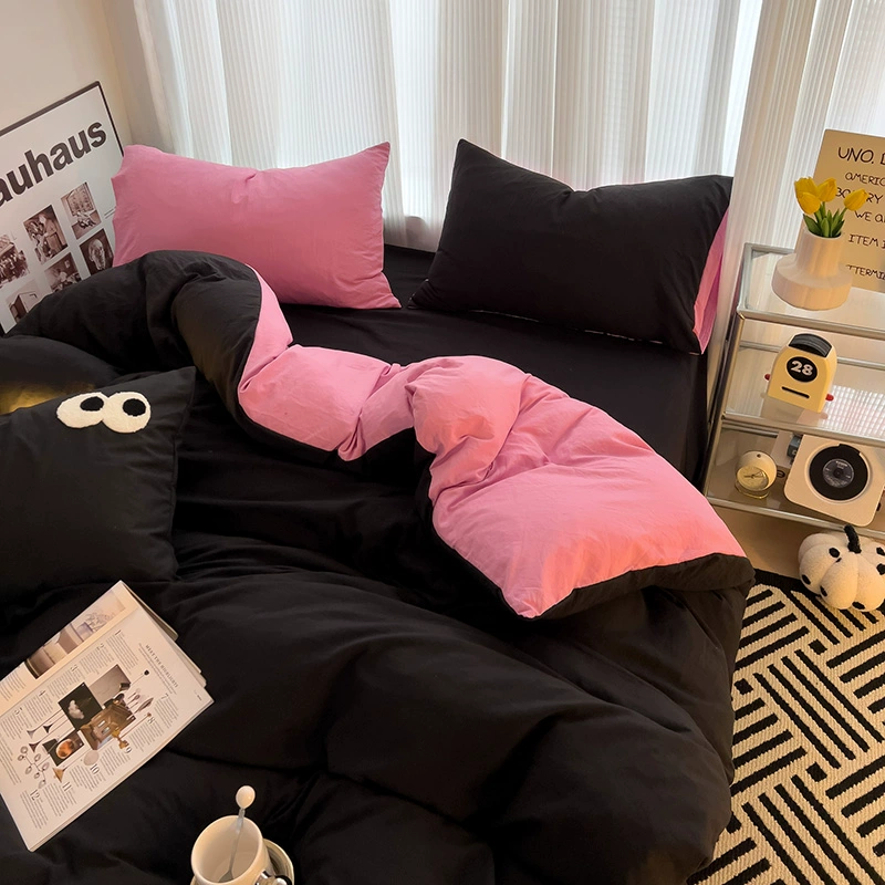 Girl Rose Red Black Washed Cotton Student Four -piece Set