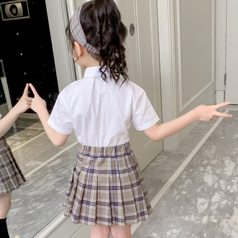 | nameOriginal | Girls' round neck shirt summer Middle and big children college style pleated skirt short sleeve two-piece school uniform class uniform student white shirt |