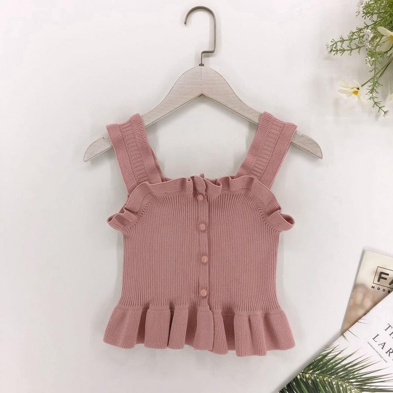 | nameOriginal | Girls' Ruffled Camisole Summer New Style Outer Wear Inner High-Grade Knitted Doll Shirt Sleeveless Top 0158 |