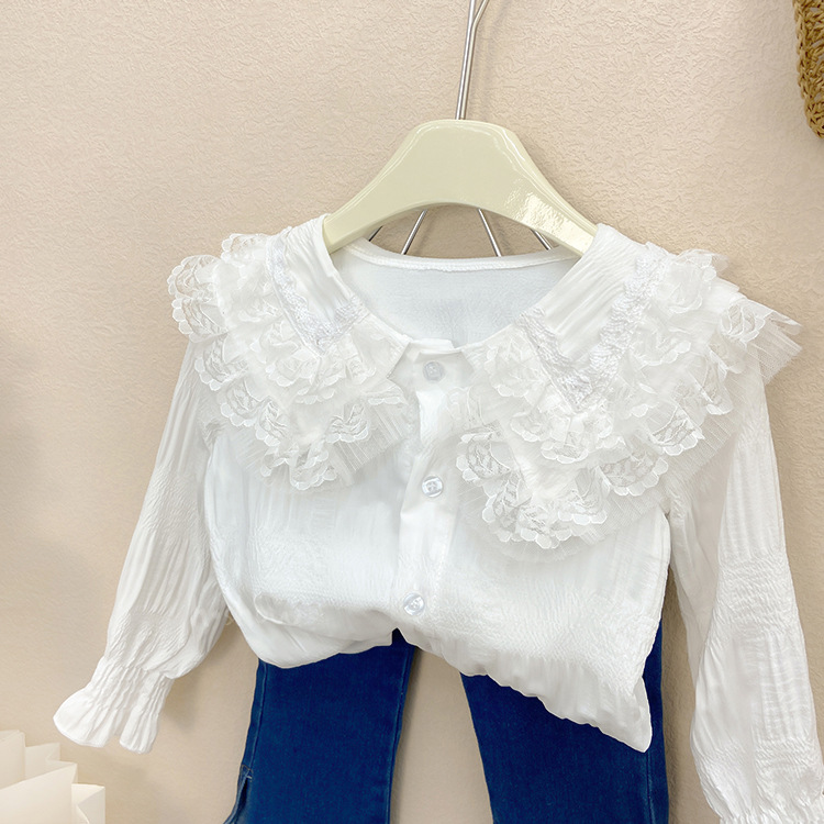 | nameOriginal | Girls' Shirt 2023 New Spring and Autumn Stylish Top Fashion Student Baby Long Sleeve White Doll Collar 0055 |