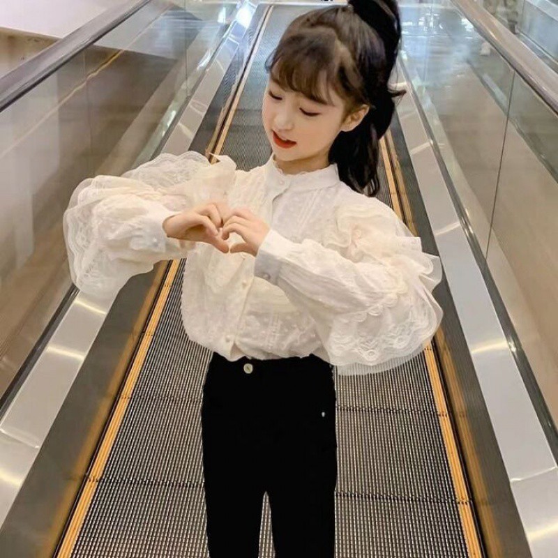 | nameOriginal | Girls' Shirt 2024 Large Children's New Korean Style Western Style Lace Top Girl's Spring Long Sleeve Shirt Trendy |