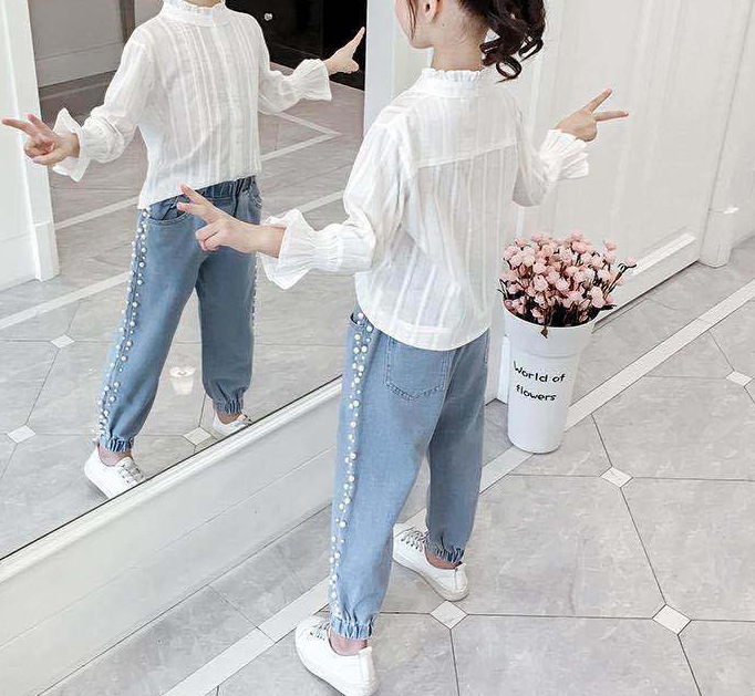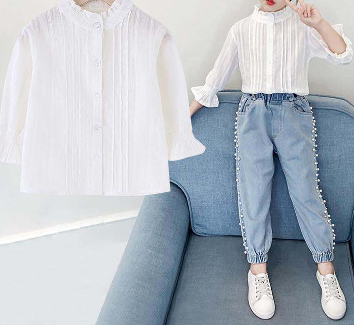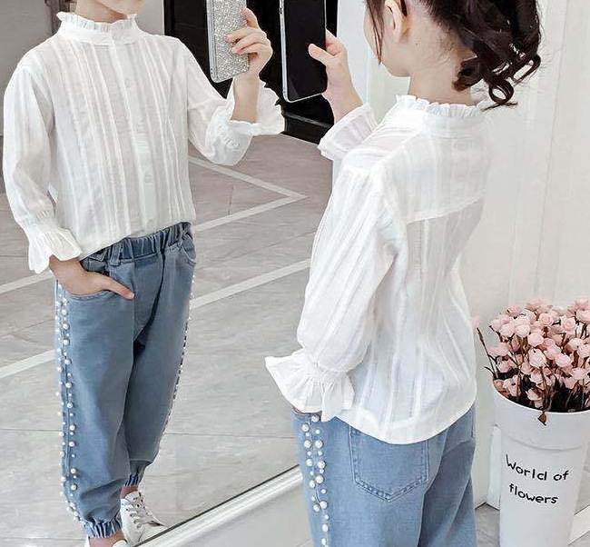 | nameOriginal | Girls' Shirt 2024 New Korean Style Western Style Big Children's Summer White Long Sleeve Top Children's Shirt Sunscreen Clothing for Women |