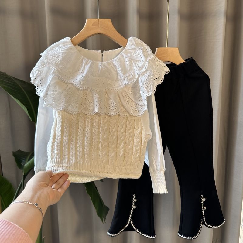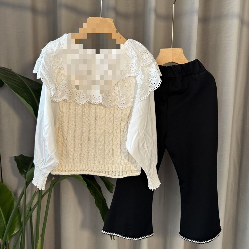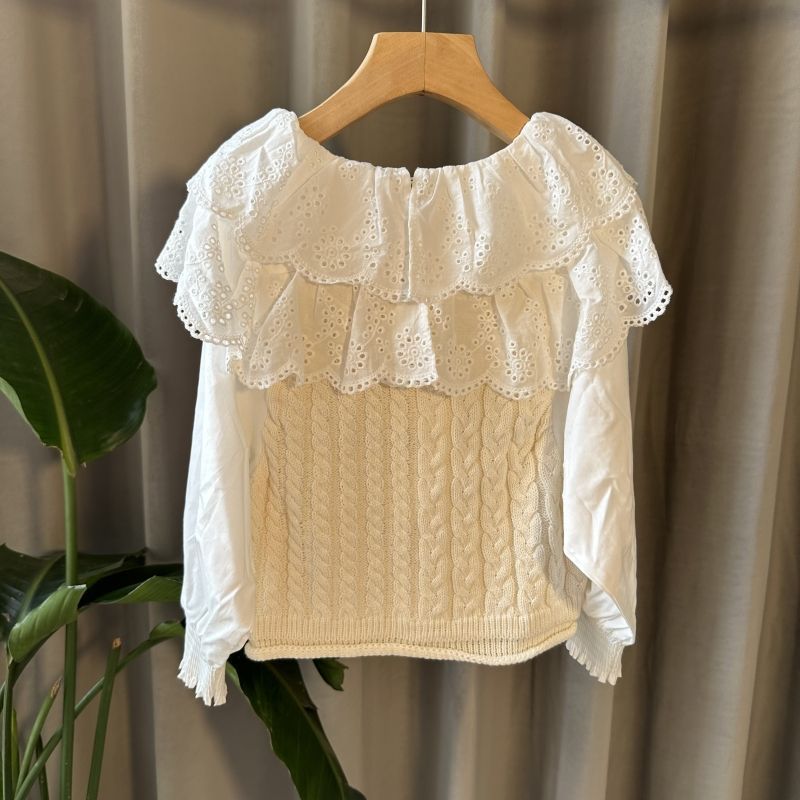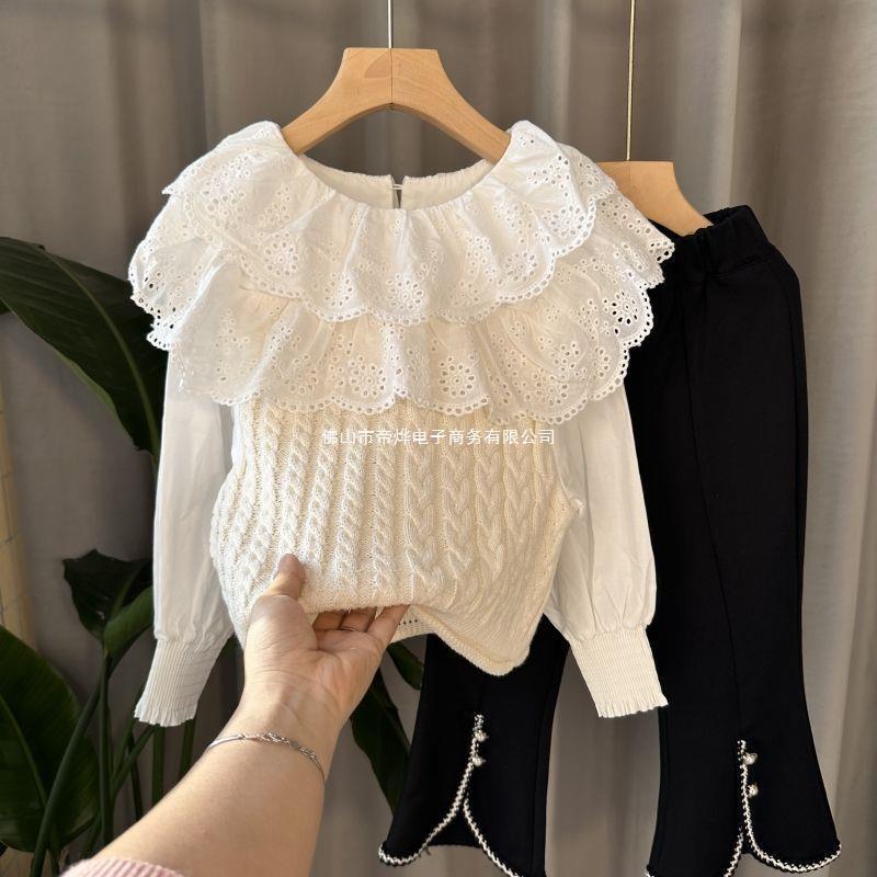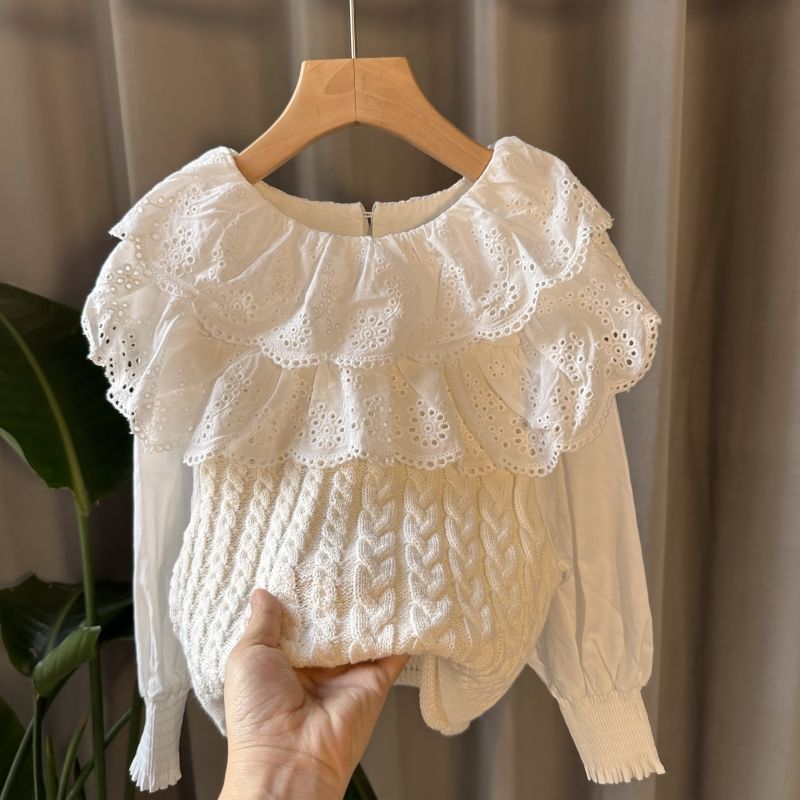| nameOriginal | Girls' Shirt Fake Two-piece Knitted Top 2024 Western Style New Spring and Autumn Clothes Korean Style Girls' Clothes Shirt |