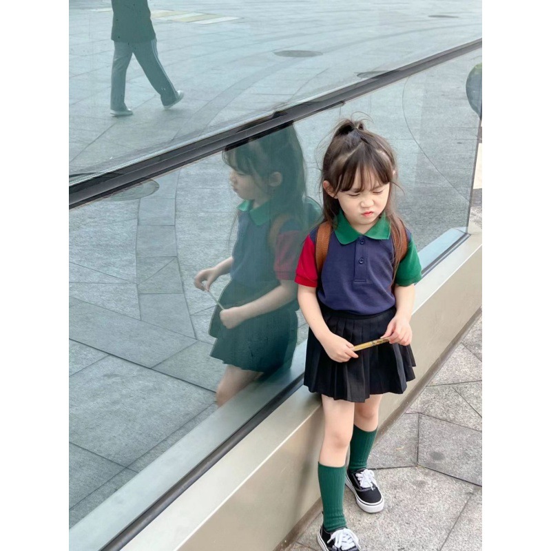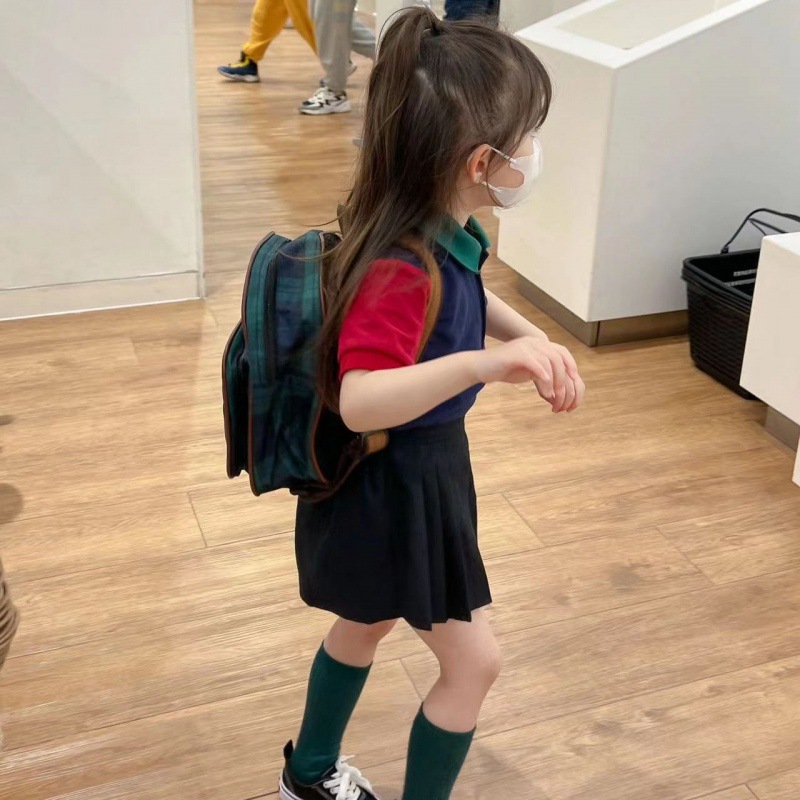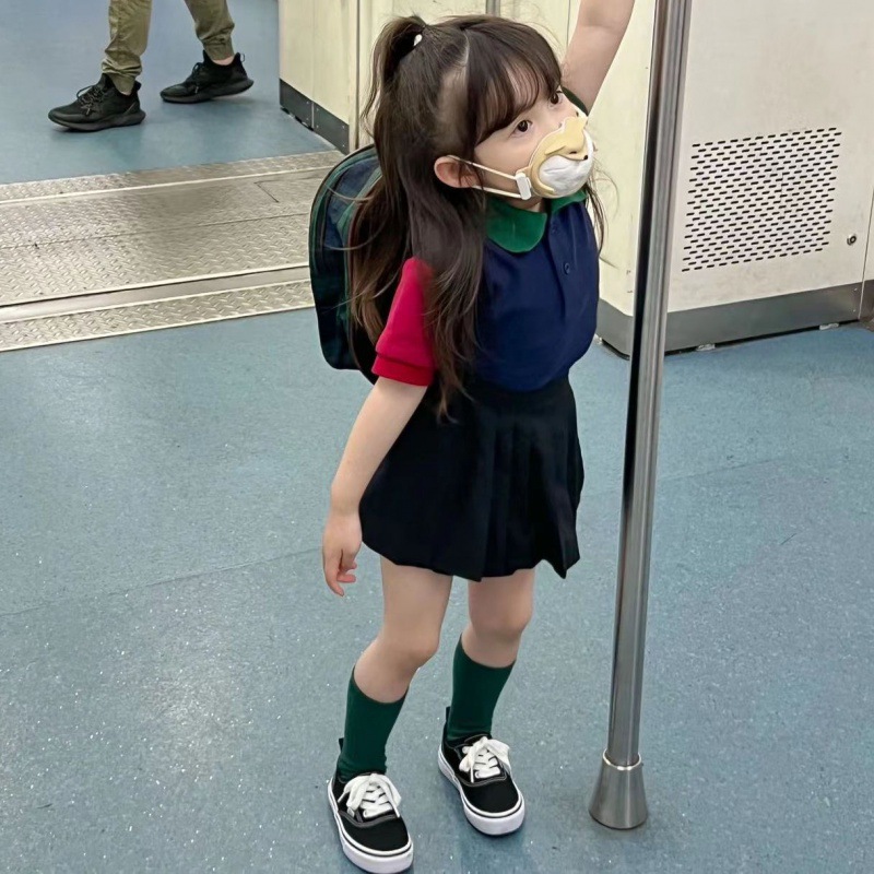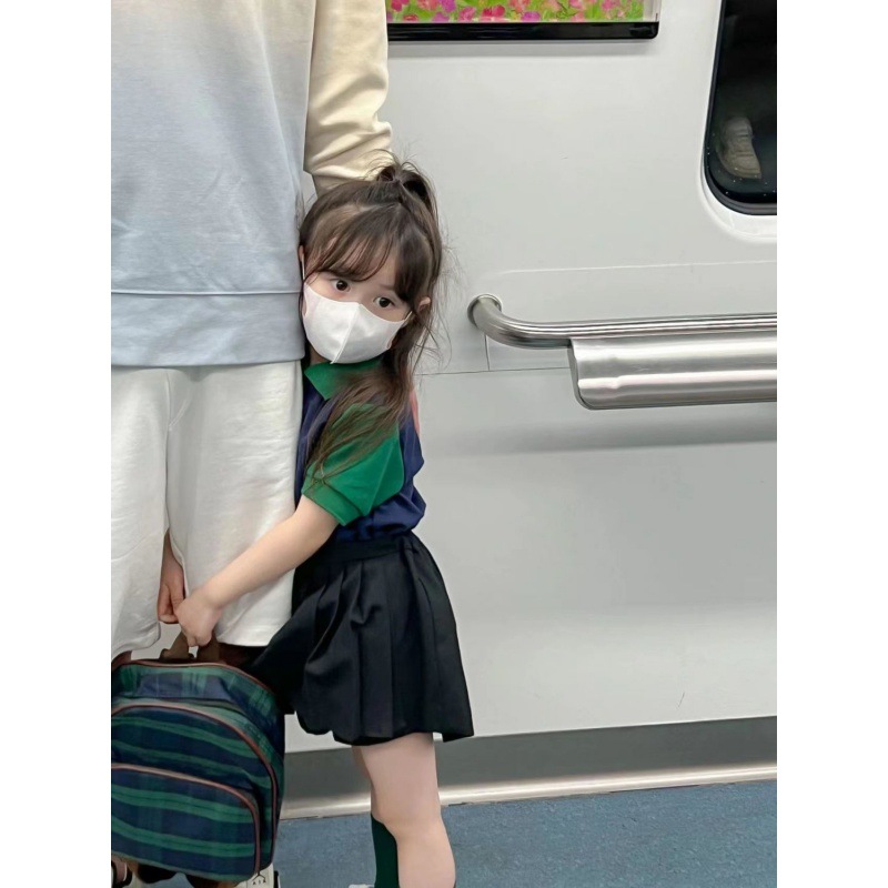 | nameOriginal | Girls' Shirt Pleated Skirt Set Anti-running Skirt Color Matching Lapel Short-sleeved Summer Wear |