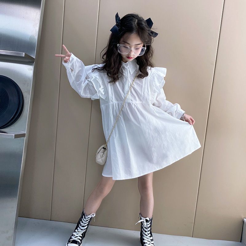 Girls’ shirt skirt Denim waist seal two-piece set 2024 Spring and Autumn New Korean style medium and big children western style ruffled top