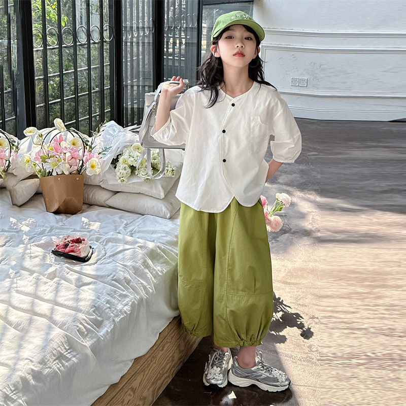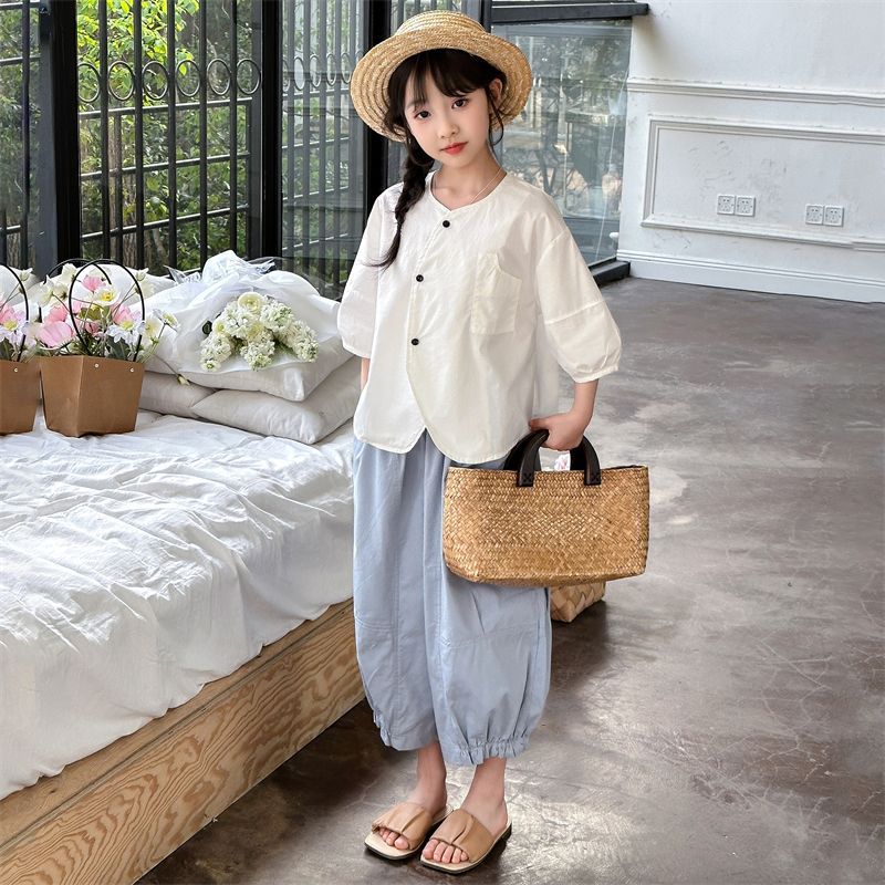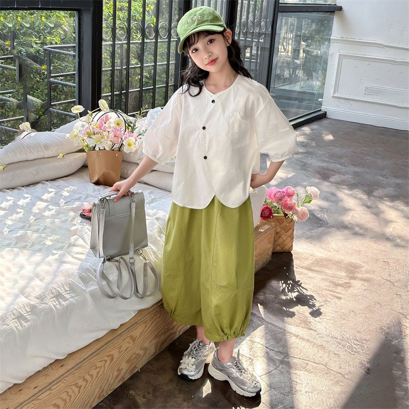 | nameOriginal | Girl's Shirt suit Summer Junior High School Students Korean Style Casual Clothes Girl's Summer Loose Bloomers Two-Piece Set |