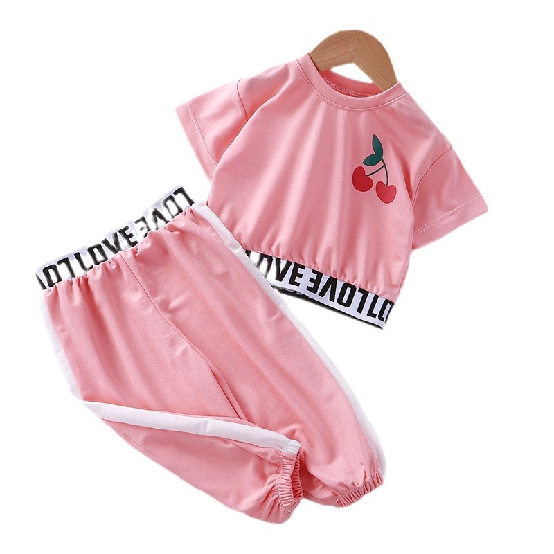 | nameOriginal | Girls' short sleeve suit exposed navel summer clothes children's western style suit short sleeve two-piece set new baby Western style fashionable |