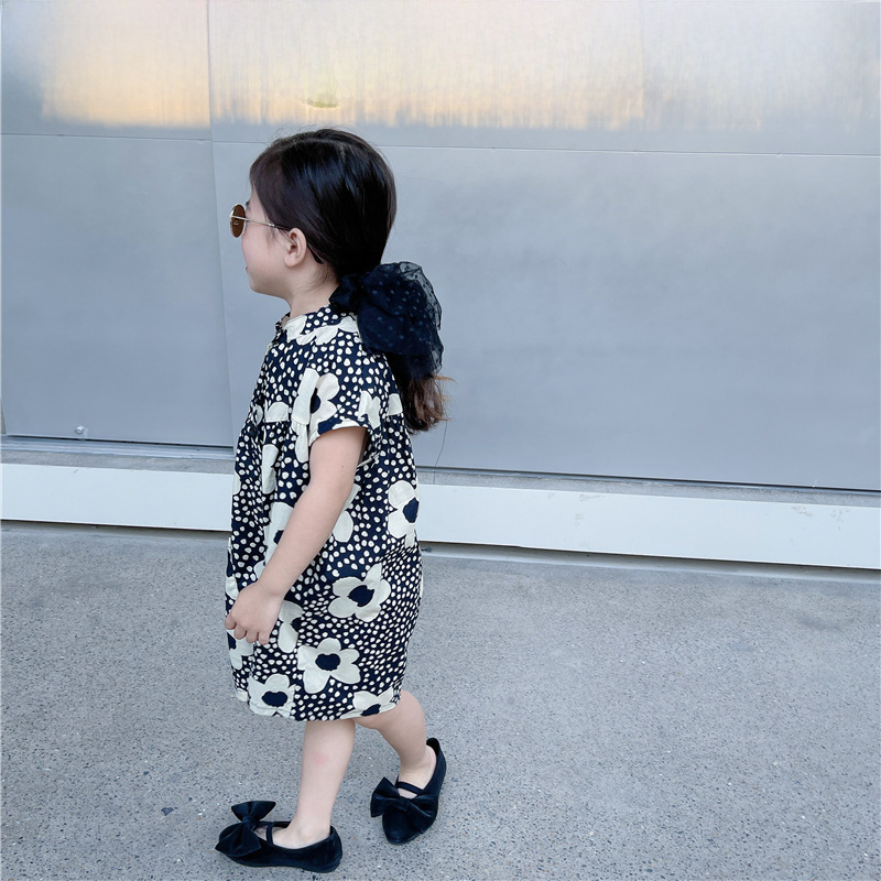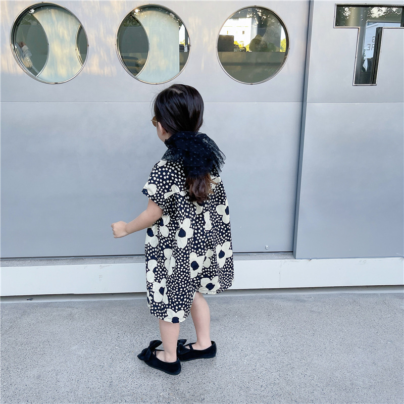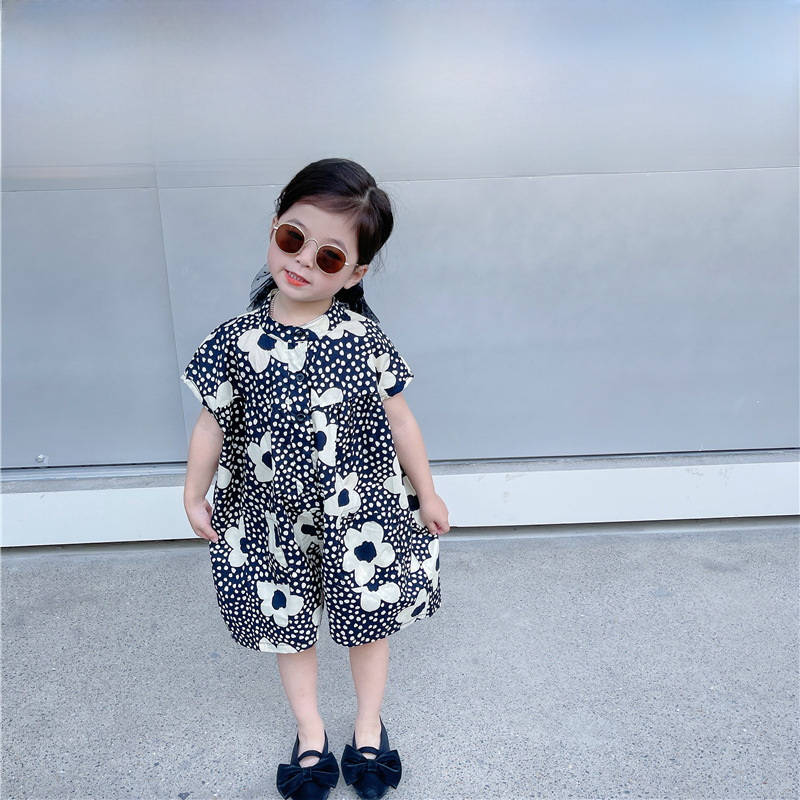 | nameOriginal | Girls' short-sleeved jumpsuit 2023 Summer loose full printed retro style flower adjustable stand collar buckle one-piece shorts |