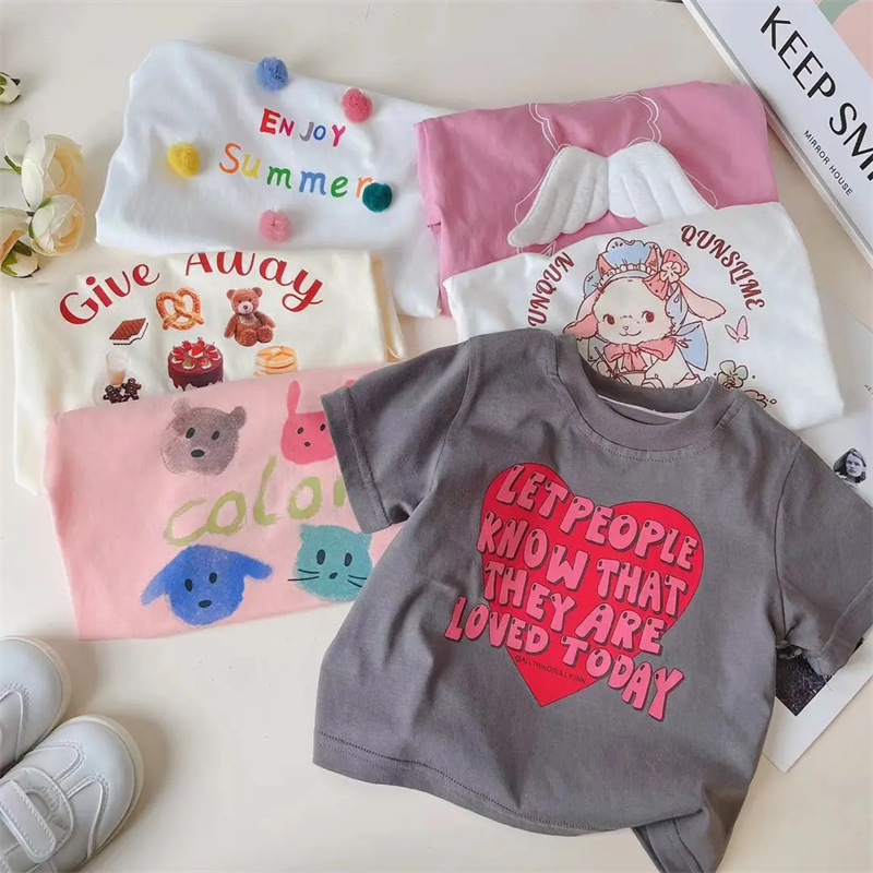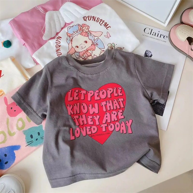| nameOriginal | Girls' Short-sleeved Love T-shirt Children's Cotton Summer 2024 Summer New Style Western Style Girls' Half-sleeved Children's Wear |